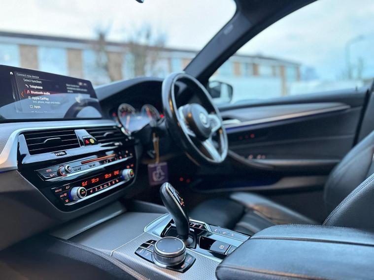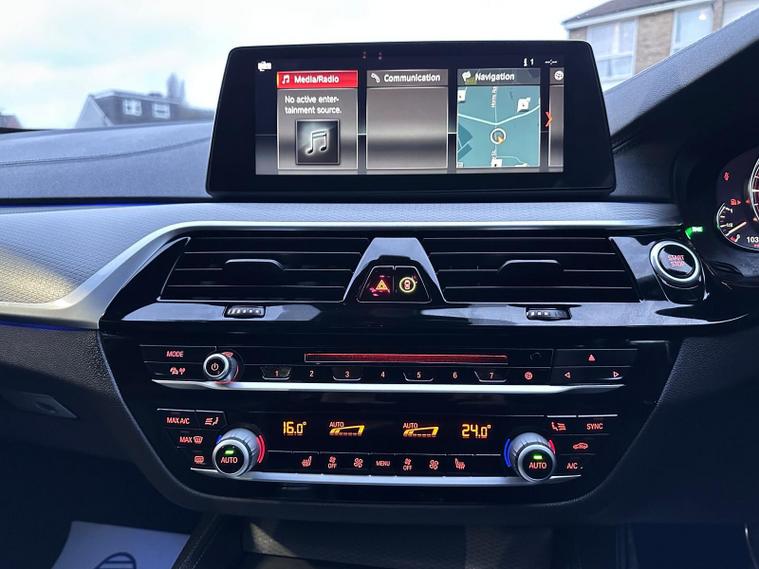 This 2017 BMW 5 Series 530e M Sport presents a unique ownership proposition, having been cherished by just one owner from new. This exceptional example boasts a 2.0 litre petrol plug in hybrid engine, meeting Euro 6 emission standards, and has covered a modest 75, 234 miles, which is low for its age. Its MOT is valid until July 2026, and a clear vehicle history check provides further peace of mind. The M Sport trim enhances its dynamic appeal, complemented by striking 20 inch BMW Individual Light V Spoke Bi Colour alloy wheels.Experience a refined driving environment with a wealth of notable features designed for comfort and convenience. The Technology Package includes Bluetooth connectivity, a Head Up Display to keep your eyes on the road, and wireless phone charging. The Comfort Package adds keyless entry, rear parking assistance with a camera, and seats with memory function. Further enhancing the driving experience are a heated steering wheel, ensuring comfort on colder days, and the inclusion of a Head Up Display within the package. These carefully selected features demonstrate a higher level of specification, setting this BMW 5 Series apart..