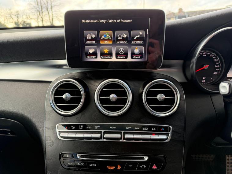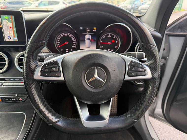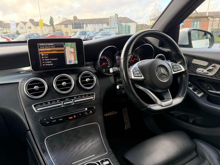 This 2018 Mercedes Benz GLC220d AMG Line (Premium) boasts exceptionally low mileage for its age, having covered just 62, 966 miles. This Euro 6 compliant four wheel drive SUV is powered by an efficient 2.1 litre diesel engine, offering a strong towing weight of 2500 kg. The AMG Line trim enhances its sporty appeal, and this Premium variant includes desirable features such as heated front seats for comfort, and the Audio 20 CD system with Bluetooth connectivity.The GLC220d AMG Line is equipped with a reversing camera and Active Parking Assist, complete with front and rear sensors, making parking manoeuvres straightforward. You'll also notice the distinctive brake calipers with Mercedes Benz lettering. This vehicle accelerates from 0 to 62 miles per hour in a brisk 8.3 seconds, demonstrating its responsive performance. Furthermore, the generous boot space ensures practicality for all your needs, setting it apart from other vehicles in its class..