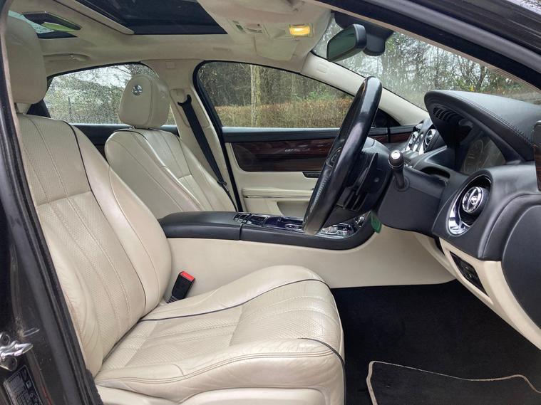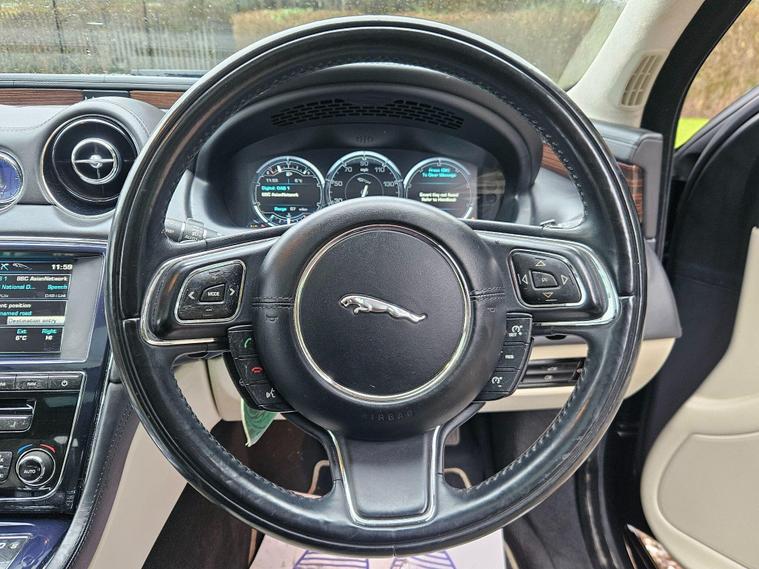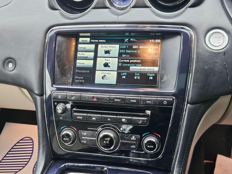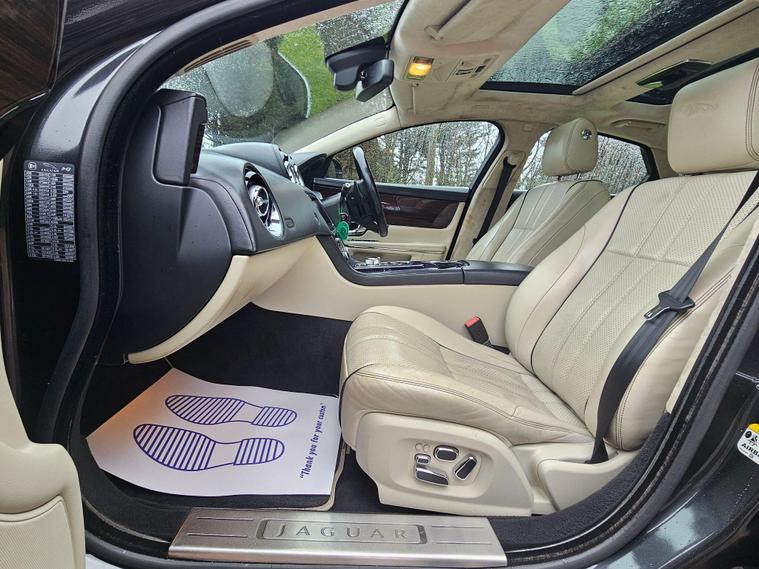 This 2012 Jaguar XJ d V6 Portfolio presents a compelling proposition with its remarkably low mileage for its age, having covered just 84, 000 miles. This particular example boasts a clear vehicle history check, offering peace of mind to its next owner. The Portfolio trim level signifies a high specification, and this XJ is no exception, featuring Xenon headlights for superior illumination and a rear view camera complemented by front parking sensors to aid manoeuvrability. Inside, occupants are treated to the exceptional Bowers & Wilkins 1200W Premium Sound System, complete with Dolby Prologic II Surround Sound, ensuring an immersive audio experience.Further enhancing the luxurious feel is the panoramic glass roof, which includes a tilt and slide front section with electric blinds, allowing for an open and airy cabin. The generous boot space provides ample practicality for luggage or shopping. Performance is also a strong suit, with the 3.0 litre diesel engine delivering brisk acceleration, achieving 0-60mph in a swift 6.0 seconds. These attributes, combined with its sophisticated features and impressive performance figures, position this Jaguar XJ as a distinguished choice within its class..