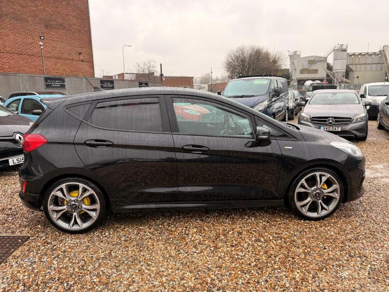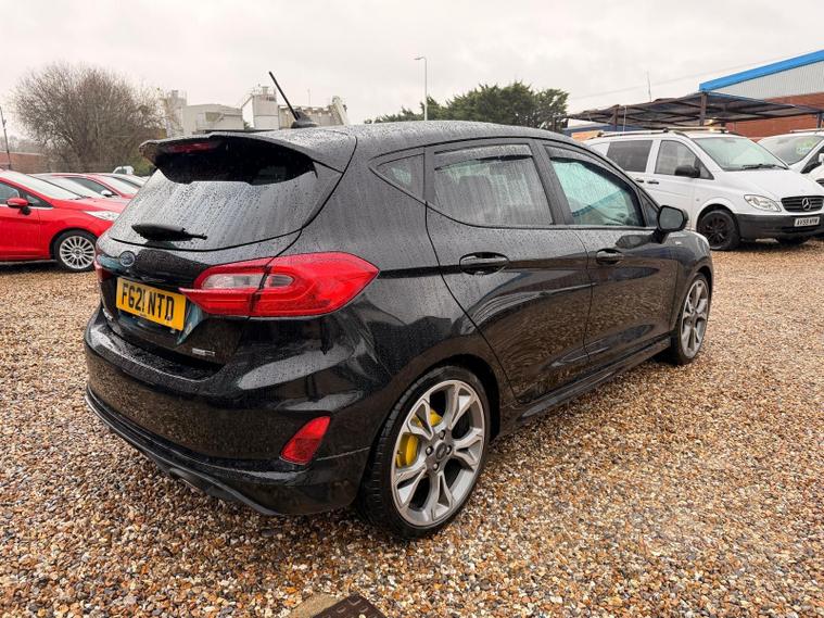 This 2021 Ford Fiesta ST-Line X Edition boasts a single owner and a comprehensive service history, with its last service recorded at 90, 990 miles. This Euro 6 compliant 1.0L petrol model comes with a 3 month warranty and a 12 month MOT provided on purchase, ensuring peace of mind. It features the desirable ST-Line Design Pack, ST-Line X Edition trim, and a host of optional packs including the Driver Assistance Pack with satellite navigation and Adaptive Cruise Control, and the Comfort Pack offering heated seats and a heated steering wheel. Inside, you'll find the B and O PLAY Premium Sound System integrated with Ford SYNC 3 Navigation, supporting Android Auto and Apple CarPlay, alongside rear parking sensors.Experience impressive performance with a 0-62mph acceleration time of just 9.4 seconds, all while achieving an outstanding fuel economy of 58 mpg. This Fiesta also benefits from low CO2 emissions, making it an economical choice. The NCAP Pack includes automatic headlights, further enhancing the driving experience. This well equipped and carefully maintained Ford Fiesta offers a compelling blend of style, technology, and efficiency that sets it apart from other vehicles in its class..