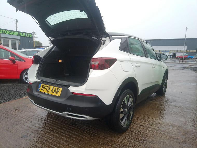 This 2019 Vauxhall Grandland X Turbo Sport Nav boasts a full dealership service history, with its last service completed on 1st April 2025 at 70, 499 miles, and comes with a clear vehicle history check. This Euro 6 compliant 1.2 litre petrol model has had only one owner and is presented with a 3 month warranty and 12 months MOT provided on purchase. Notable features include the Park and Go Pack Two, offering 360 degree camera and front and rear parking sensors, alongside Premium LED Adaptive Forward Lighting for enhanced visibility. You'll also find a wireless charger for mobile devices, keyless entry with a start stop button and power tailgate, and a Denon Premium Sound System for an enjoyable driving experience.The Vauxhall Grandland X Turbo Sport Nav offers several advantages over similar vehicles. Its low CO2 emissions make it an environmentally conscious choice, while its impressive acceleration of 0-60mph in just 9.5 seconds provides a responsive drive. The large boot space ensures practicality for all your needs, and its low insurance group rating contributes to lower running costs..