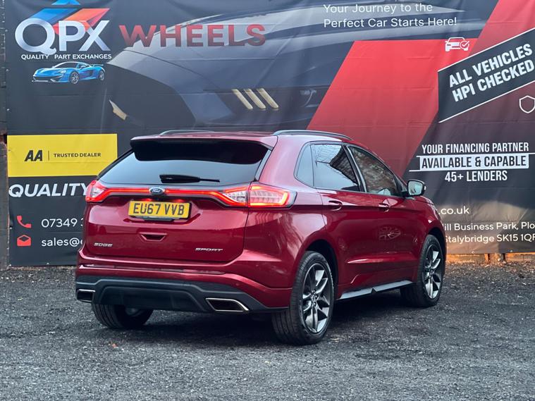QPX Wheels is pleased to offer this Ford Edge 2.0 TDCi Sport Powershift AWD, finished in striking Red. This 2017 (67) Euro 6 diesel model is ULEZ compliant and pairs a smooth automatic Powershift gearbox with an intelligent AWD system, delivering confident performance, comfort and practicality. With 98, 000 miles and 1 previous owner, this high-spec Sport model represents excellent value in a powerful and well-equipped SUV. HPI CLEAR, 2KEYS, EURO 6 ULEZFront & Rear Parking SensorsRear View CameraAdaptive Cruise ControlLane Keeping AidBlind Spot Information SystemAutonomous Emergency BrakingTraffic Sign RecognitionDriver Alert SystemDynamic Stability ControlHill Start AssistTyre Pressure Monitoring SystemISOFIX Child Seat Mounting PointsLeather & Suede Sports SeatsDual-Zone Climate ControlTouchscreen Infotainment SystemSatellite NavigationBluetooth Phone & Media ConnectivityDue to high demand, early booking of viewings is recommended. Arrange yours via our website https:/ dealer's website or by calling +44 (0)7349390791Our friendly team will look after you before, during and after the sales. We will help you with taxing the vehicle, completing official forms, and we will make sure that you, your family and loved ones are safe on the road. We also offer a wide range of warranties and finance to meet your needs. WHO WE AREWe are a car dealership with 16 years of experience, based in Clarence Street, Stalybridge, SK15 1QF. We are 100% sure that we can find you the right vehicle as we offer over 150 cars for sale at any time. OUR QUALITY PROMISE- Every car comes with our FREE 3 Months warranty- We offer a fresh MOT for all vehicles due for one within the next 3 months. - All our vehicles are HPI Clear and undergo a 39-Point check, conducted by professional inspectors. - Every vehicle is valeted and sanitised to a high standard. - We are able to offer delivery nationwide at competitive prices, don't hesitate to contact us for a quote.FINANCE, PART EXCHANGE OR A STRAIGHT PURCHASE IS AVAILABLE. QPX Wheels Team.https:/ dealer's website