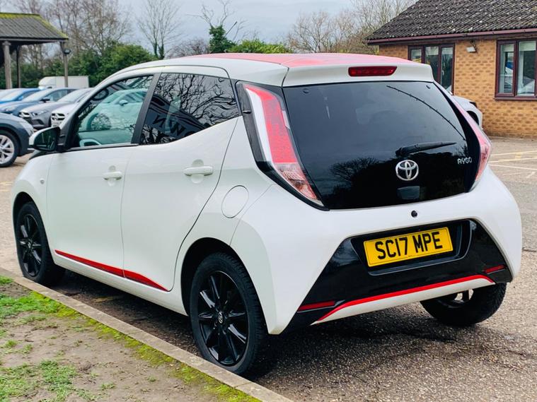 MOT IS TILL 11 October 2026, SERVICE HISTORY INCLUDES 5 SERVICE STAMPS IN THE BOOK, This 2017 Toyota AYGO VVT-i x-press boasts a clear vehicle history check, offering you peace of mind. This stylish hatchback is powered by an efficient 1.0L Petrol Engine and meets Euro 6 emission standards. It comes equipped with Automatic Air Conditioning for your comfort, Dusk Sensing Headlights that illuminate automatically, and a Reversing Camera integrated with the x-touch 7in Multimedia Touch Screen, which also includes Bluetooth connectivity for seamless phone integration. The MOT is valid until October 2026, further enhancing its readiness for the road. The AYGO x-press stands out with its impressive fuel economy, achieving a remarkable 69 mpg, which indicates it is more economical than many other vehicles in its class. Furthermore, its low insurance group and low CO2 emissions highlight its affordability and environmental consideration, making it a sensible choice for everyday driving..