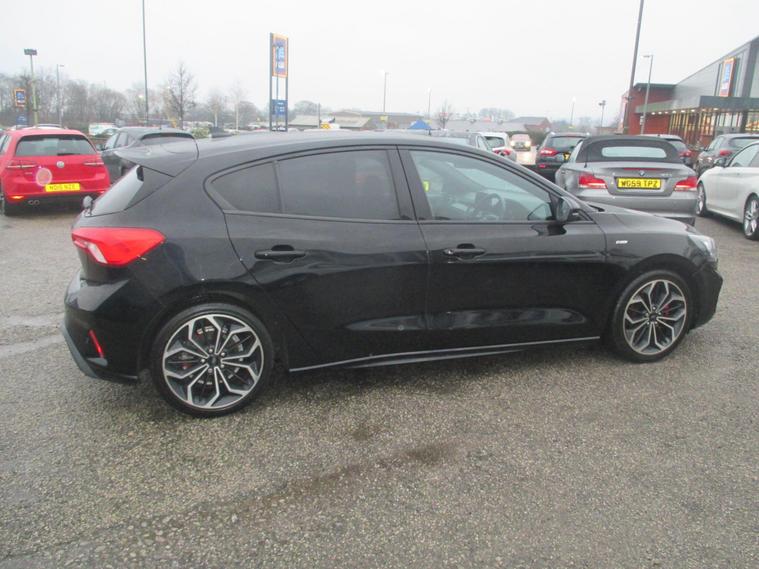 This 2019 Ford Focus T ST-Line X offers a compelling blend of sporty design and practical technology. Powered by an efficient 1.0 litre petrol engine, this Euro 6 compliant model is registered in 2019 and presents itself in the desirable ST-Line X trim. Inside, you'll find comfort features such as heated front seats and dual-zone electronic automatic temperature control, ensuring a pleasant driving experience in any weather. For seamless connectivity and navigation, the Ford SYNC3 DAB system is included, offering Android Auto, Apple CarPlay, and Bluetooth functionality. Parking is made easier with front and rear parking sensors.The Ford Focus T ST-Line X stands out with its impressive performance and efficiency. Achieving 0-62mph in just 10.0 seconds, it delivers responsive acceleration. Furthermore, its low CO2 emissions highlight its environmental consideration, making it a more economical choice compared to many other vehicles in its class. This combination of engaging driving dynamics, advanced technology, and efficient operation makes this Focus a well rounded option for discerning drivers..