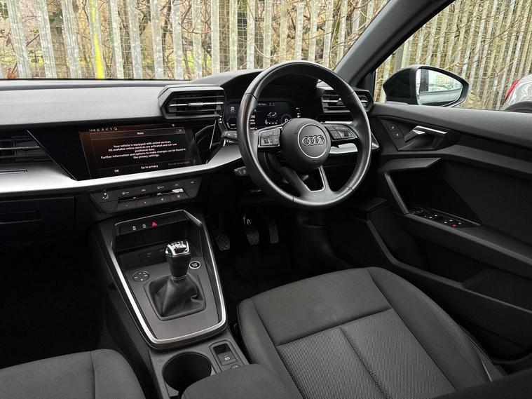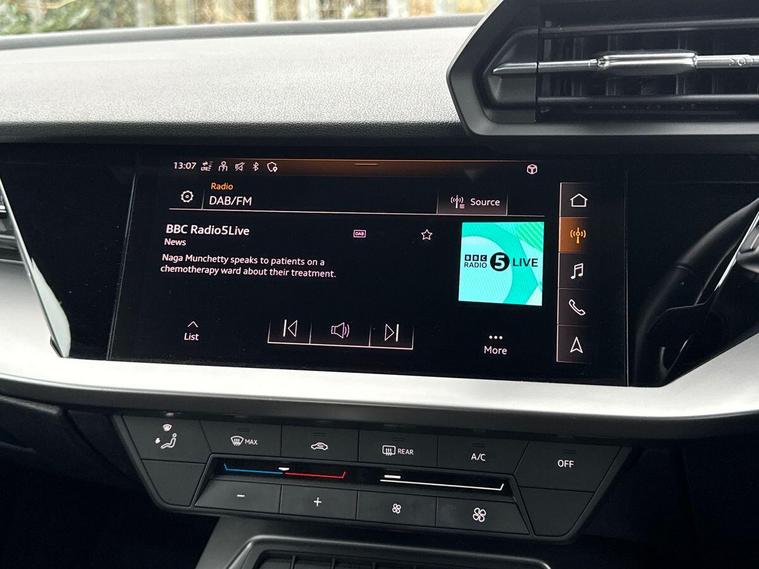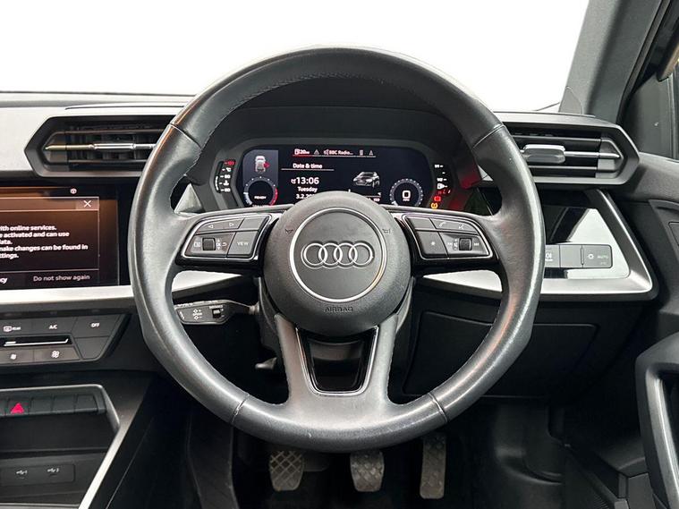 This 2022 Audi A3 TFSI Technik offers exceptional value with its single owner and remarkably low mileage of just 20405 miles. This Euro 6 compliant model is powered by an efficient 1.0 litre petrol engine and boasts a clear vehicle history check. The Technik trim comes equipped with practical features including LED headlights with distinctive LED daytime running lights, complemented by halogen lights in the rear. Convenience is enhanced by a light and rain sensor which automatically activates the headlights, a Bluetooth interface for seamless phone connectivity, and manual air conditioning to keep you comfortable.The Audi A3 TFSI Technik provides a smooth driving experience, reaching 0-62mph in 10.6 seconds. Its generous boot space is a standout feature, offering ample room for luggage or shopping, making it a practical choice for everyday use. These attributes, combined with its low mileage and single owner status, position this Audi A3 as a superior option compared to other vehicles of its age and class..