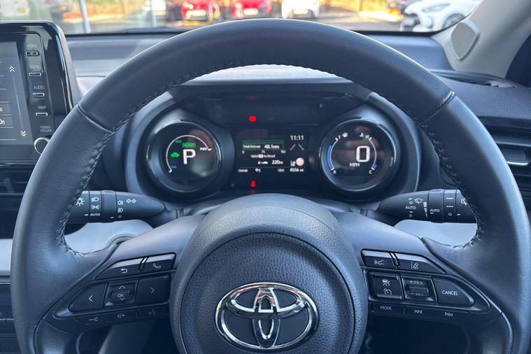 This 2022 Toyota Yaris VVT-h Excel boasts an exceptional provenance, having been meticulously maintained with a full dealership service history and only one owner from new. This Euro 6 compliant 1.5L Petrol Hybrid is presented in excellent condition with a very low mileage of just 4541 miles, further enhanced by a 12 month warranty and 12 months MOT provided on purchase. As a Toyota manufacturer approved vehicle, you can be assured of its quality. Notable features include Blind Spot Monitoring with Blind Spot Assistance, Toyota Safety Sense 2 with Adaptive Cruise Control, Dual-Zone Automatic Air Conditioning, LED Headlights, and Automatic Headlights.The Toyota Yaris VVT-h Excel offers impressive efficiency, highlighted by its remarkable 66 mpg fuel economy and low CO2 emissions, indicating it performs better than many similar vehicles in its class. The last service was completed at 3100 miles on 22 January 2026, ensuring it is up to date and ready for its next owner. This combination of low mileage, comprehensive servicing, and advanced safety and comfort features makes this Yaris an outstanding choice..