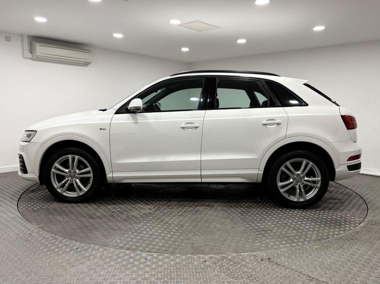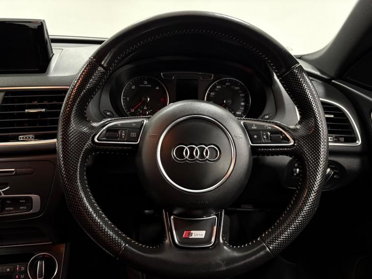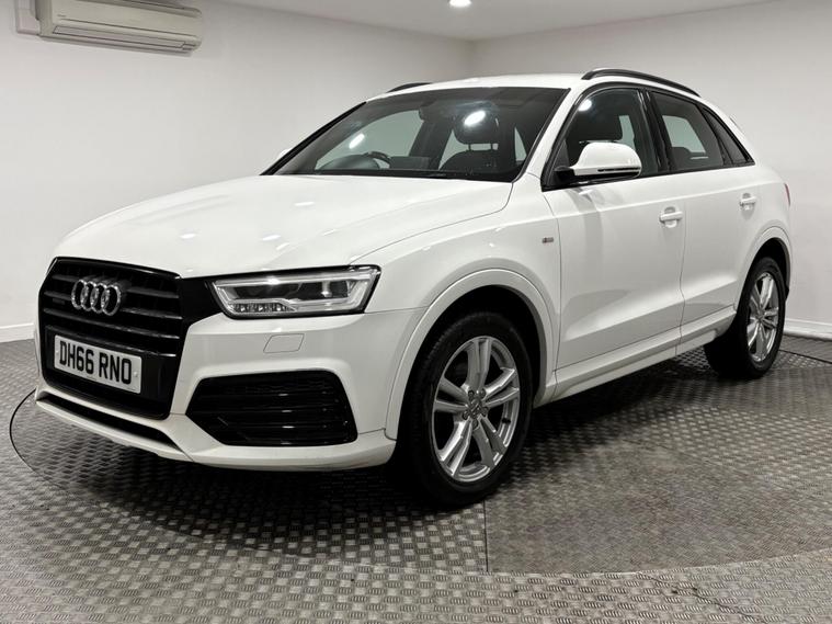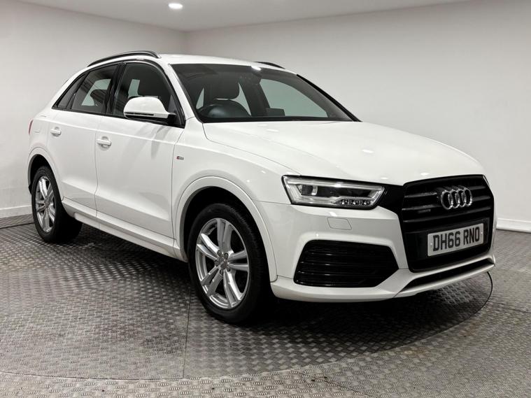 This Q3 S-line has been full serviced through an Audi main dealer with services at 19-37-55-65k miles including the cam belt change at 55k. Supplied with 2 keys and has MOT until October 2026, finished in shell white with black part leather interior. It features the desirable Audi Exclusive Black Styling Package, enhancing its already sophisticated appearance. Inside, you'll find comfort in the heated front seats and the convenience of dual zone electronic climate control. For ease of parking, rear parking sensors are fitted, and the all weather LED headlights provide excellent visibility in all conditions.Under the bonnet, a 2.0 litre diesel engine powers this Euro 6 compliant Q3, delivering an impressive 0-60mph time of just 7.6 seconds. This performance is matched by excellent fuel economy, achieving a highlighted 53 miles per gallon, demonstrating its efficiency compared to similar vehicles..