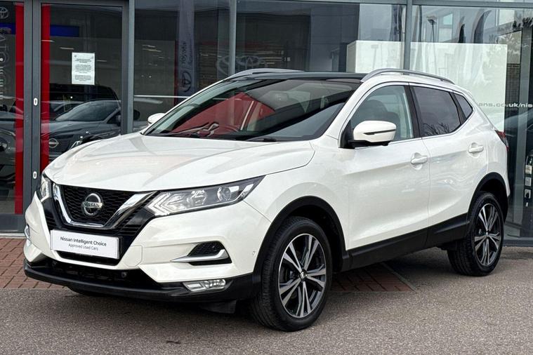 This 2019 Nissan Qashqai dCi N Connecta is a Nissan manufacturer approved vehicle, offering peace of mind with its MOT valid until November 2026. With only 46, 687 miles on the clock, it boasts low mileage for its age. This Euro 6 compliant 1.5L diesel model comes in the N Connecta trim and features the desirable Glass Roof Pack, complete with a fixed panoramic sunroof. Parking is made easier with a rear view camera, rear parking sensors, and the intelligent Around View Monitor providing a 360 degree camera view, all complemented by keyless entry via the intelligent key system.The Qashqai N Connecta stands out with its impressive fuel economy, achieving 53 miles per gallon, and its low CO2 emissions, indicating it is more environmentally friendly than many comparable vehicles. Furthermore, its placement in a low insurance group suggests that running costs will be more affordable. These highlights, combined with its comprehensive features and excellent provenance, make this Nissan Qashqai a compelling choice..