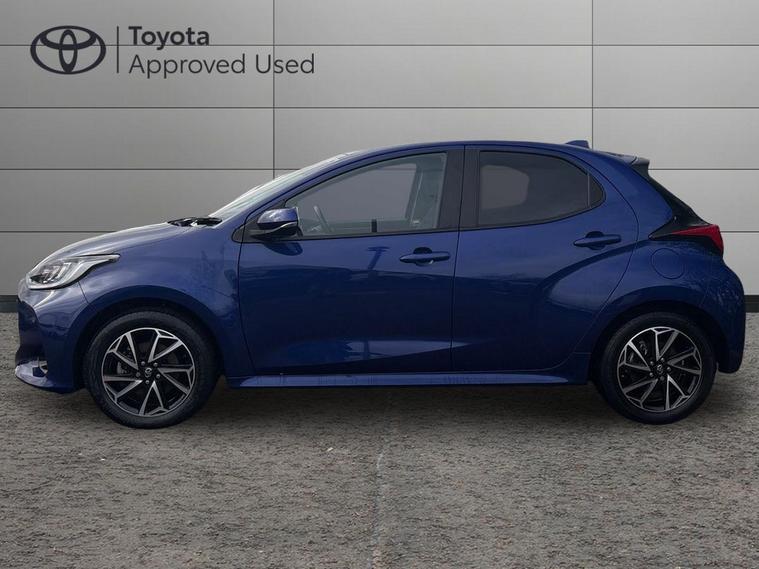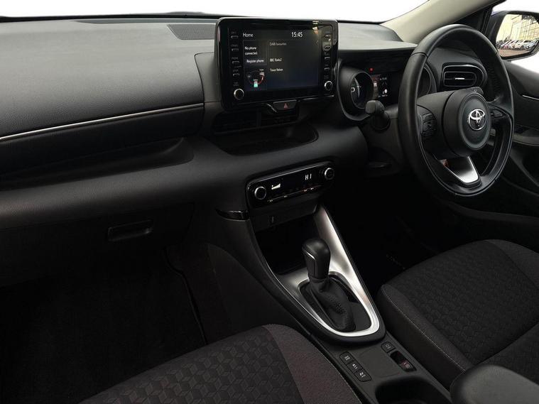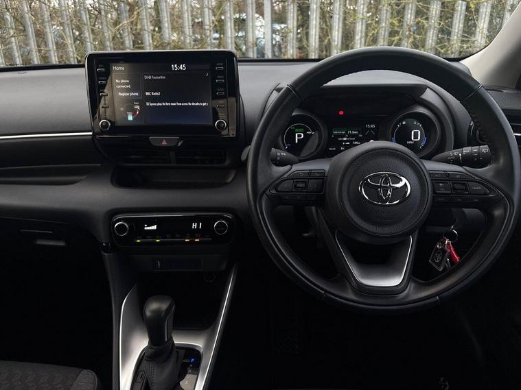 This 2023 Toyota Yaris VVT-h Design is a Toyota manufacturer approved vehicle with only one owner and a full service history, having had its last service in February 2025 at 12, 315 miles. This Euro 6 compliant 1.5L petrol hybrid model comes with a 12 month warranty and an MOT valid until March 2026, offering peace of mind. It features Toyota Safety Sense 2, including adaptive cruise control, automatic air conditioning with climate control, LED headlights with a front light guide, and smartphone integration with Apple CarPlay and Android Auto.The Yaris Design stands out with its impressive fuel economy, achieving a remarkable 69 mpg, and its low CO2 emissions, making it a more economical and environmentally conscious choice compared to similar vehicles. The automatic headlights further enhance its convenience and safety features, ensuring a smooth and assured driving experience..