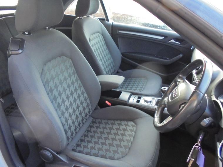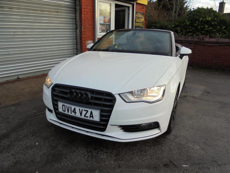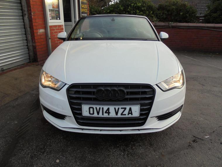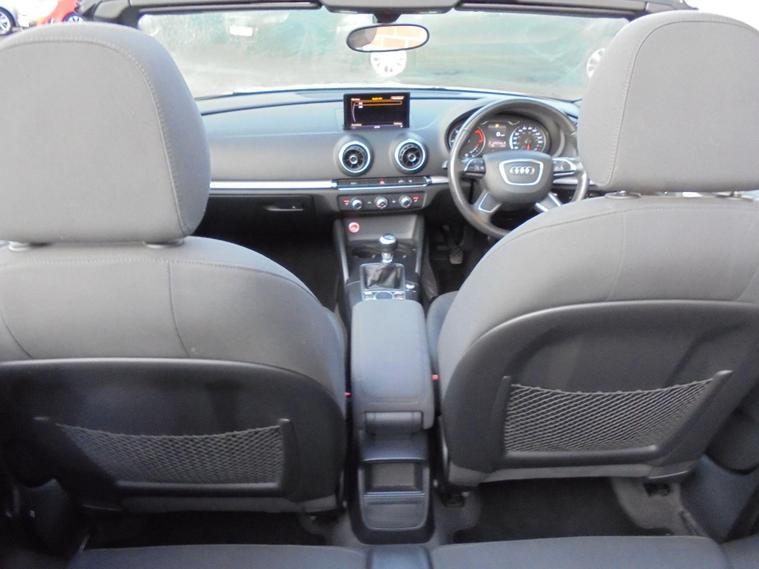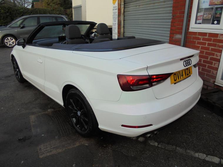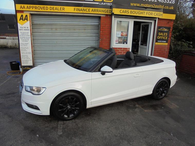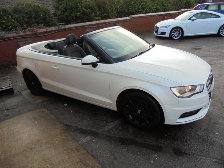 AUDI A3 CABRIOLET 2.0 TDI SE EURO 6.METALLIC PEARL WHITE WITH CONTRASTING BLACK DETAILED CLOTH INTERIOR.GREAT SPEC WITH SAT NAV, BLUETOOTH CONNECTIVITY, HEATED SEATS, REAR PARKING SENSORS, AIRCON, DAB RADIO, 16 BLACK ALLOY WHEELS AND 2 dealer's website WITH FULL AUDI SERVICE HISTORY WITH MOT UNTIL JANUARY 2027.VERY ECONOMICAL NEW SHAPE A3 CONVERTIBLE £20 A YEAR ROAD TAX AND 65 MPG.BEST VALUE IN UK 12 MONTHS FREE AA BREAKDOWN COVER AND 24 MONTHS WARRANTY INCLUDED IN PRICE.FINANCE AVAILABLE P/X WELCOME..