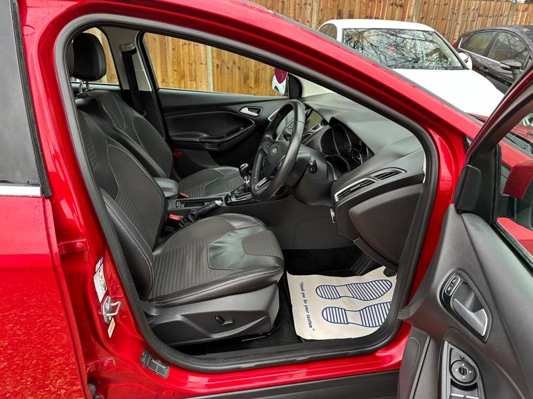 This 2015 Ford Focus T Titanium X offers a compelling blend of performance and comfort, making it a standout choice. Powered by a responsive 1.5 litre petrol engine and meeting Euro 6 emissions standards, this model is equipped with desirable features such as Bi-Xenon headlights for superior visibility and Electronic Automatic Temperature Control for a consistently pleasant cabin environment. Parking is made simpler with front and rear parking sensors, complemented by a rear view camera, while the front seats are heated for added comfort during colder journeys.The Ford Focus T Titanium X demonstrates its superiority with impressive acceleration, reaching 0-62mph in just 8.6 seconds, a figure that places it ahead of many comparable vehicles. This performance is matched by its practicality, boasting a large boot space perfect for luggage or shopping. These attributes combine to offer a driving experience that is both engaging and exceptionally convenient..