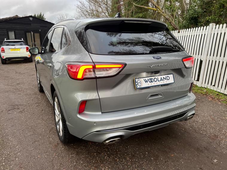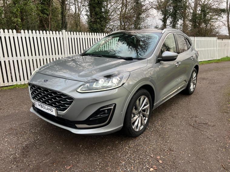 Reserved By appointment onlyDiscover the rare spec & fantastic Ford Kuga Vignale at Woodland Prestige! Finished in metallic silver/grey with stunning black leather. Stunning, High-Spec - Automatic, Petrol Hybrid , ULEZ CompliantPremium audio, Rear CameraHeads up displayPanoramic glass opening Dual sunroofPremium Leather Heated front Seats front and rearHeated steering wheelBluetooth Audio & Navigation with Apple CarPlay Alloy WheelsClimate Control & Power TailgatePower cable This extraordinary Ford boasts a plethora of options, making it an absolute head-turner. It comes with a full service history and has been meticulously cared for with low mileage. Visit our Website - dealer's website Nationwide Delivery AvailablePart Exchange WelcomeFinance from 9.9% APRYour purchase includes:6-Month Extendable WarrantyFresh 12-Month MOTRecent Service Experience peace of mind with your purchase from us. Woodland Prestige is a 5-star rated business on Google and AutoTrader. We also provide:12-Months AA Breakdown CoverDrive-Away InsuranceAA Assured SchemeBuy with confidence, and explore financing options on our website: dealer's website Only - Enquire today and reserve your dream car!''.