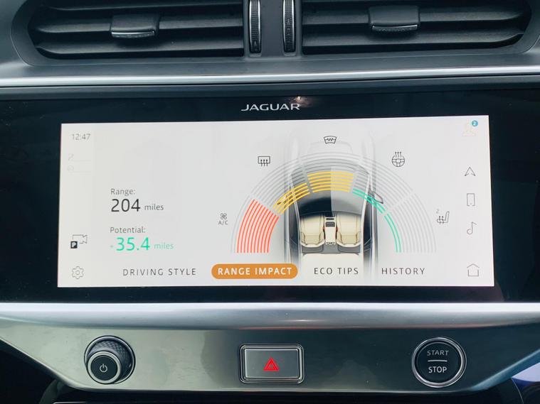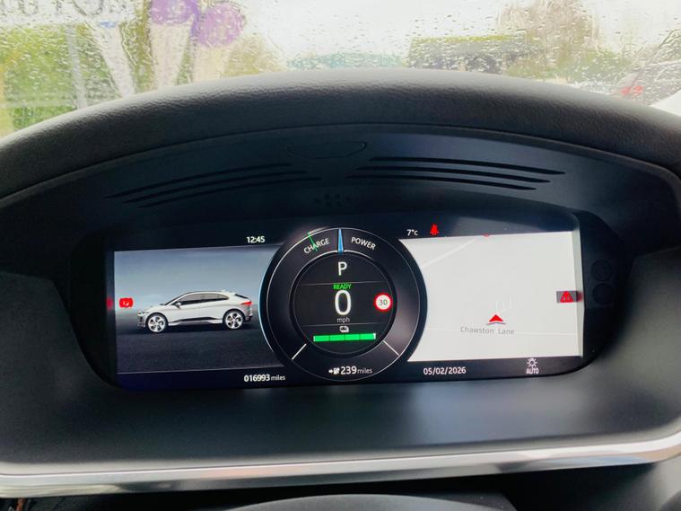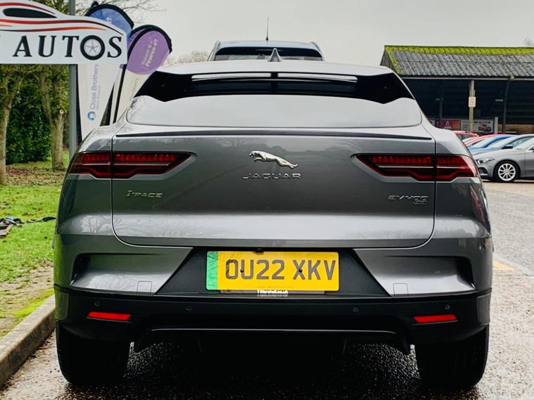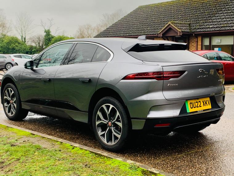 ONLY 1 OWNER SINCE NEW, SPARE KEY, With only one owner and a remarkably low mileage of 16, 915 miles for its 2022 registration, this Jaguar I-PACE 400 SE presents an exceptional opportunity. As a fully electric vehicle with Four Wheel Drive, it combines performance with efficiency. The SE trim level ensures a well equipped experience, featuring Premium LED Headlights with Signature DRL, a 2 Zone Climate Control system, and a Heated Steering Wheel for added comfort. Inside, you will find 12 Way Heated Electric Front Seats with Driver Memory and 2 Way Manual Headrests, along with seamless integration of Android Auto. The Jaguar I-PACE 400 SE offers impressive capabilities, boasting an acceleration of 0-60mph in just 4.5 seconds, demonstrating its dynamic performance. Its electric powertrain provides a maximum range of 279 miles from its 90 kWh battery when new, and can be fully charged at home on a 7kW charger in approximately 12 hours and 36 minutes. For quicker top ups, the fastest public charging can take the battery from empty to 80% in around 50 minutes. This vehicle also benefits from a clear vehicle history check and offers generous boot space, making it a practical and desirable choice..