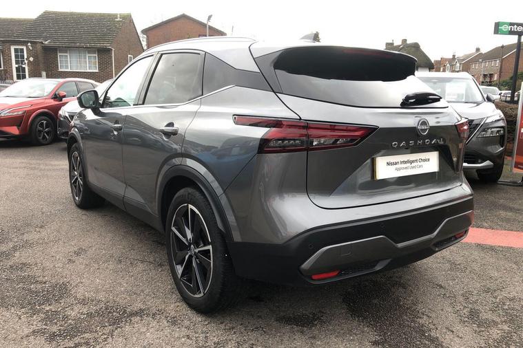 This 2022 Nissan Qashqai DIG-T Tekna is a Nissan manufacturer approved vehicle, boasting a single owner from new. This impressive example features a 1.3 litre petrol hybrid engine paired with a four wheel drive drivetrain, all meeting the Euro 6 emission class.The Tekna trim level offers a generous boot space, making it ideal for families or those who need extra room for luggage or shopping. Furthermore, this Qashqai benefits from a low insurance group, which can help to reduce your running costs compared to similar vehicles..
