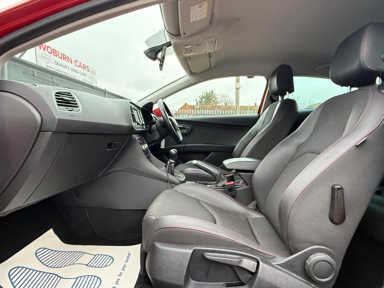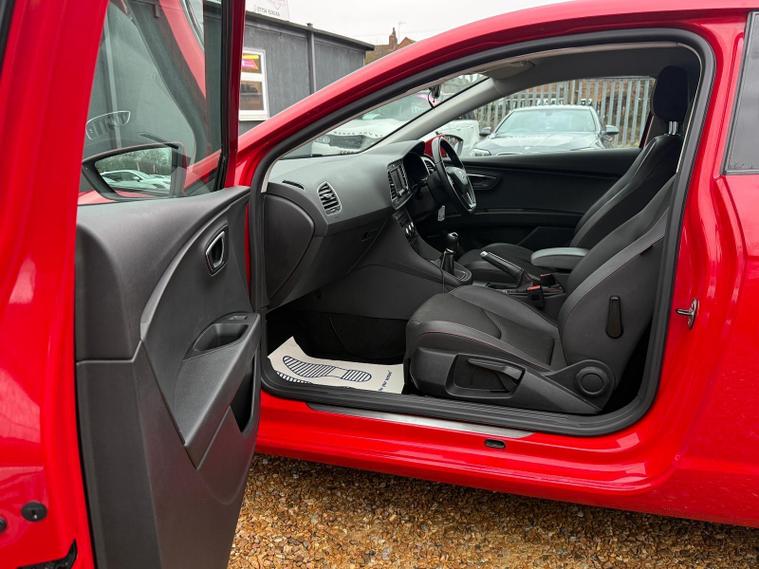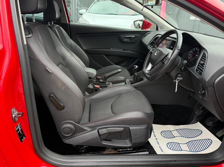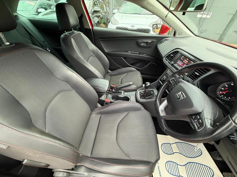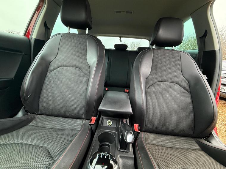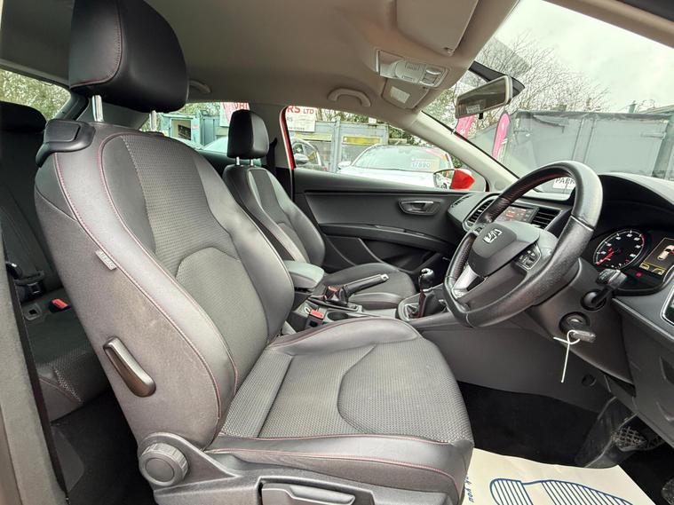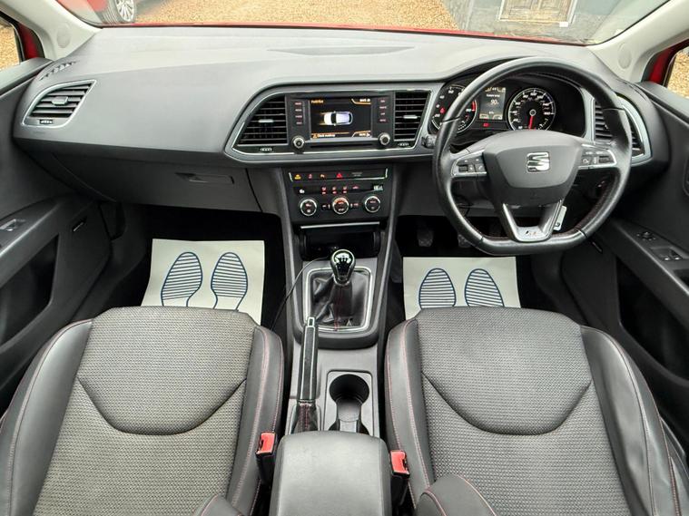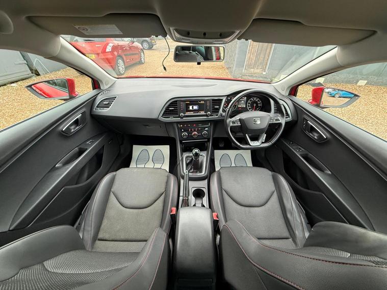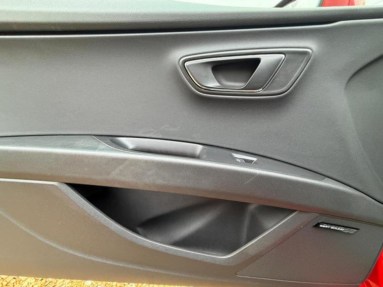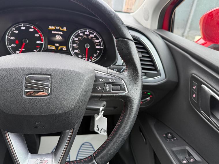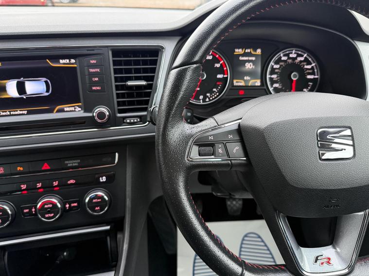- Steering Wheel - Flat-Bottomed Perforated Leather with Red Stitching and FR Logo