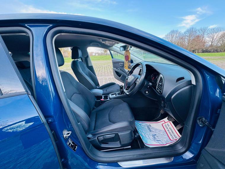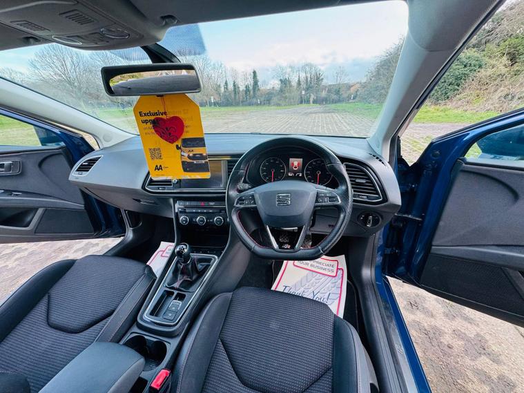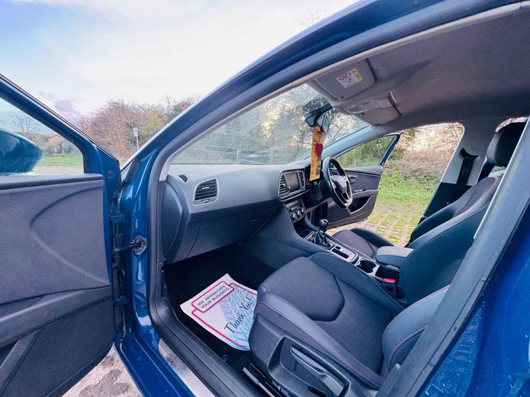 SEAT Leon 1.4 TSI FR Technology Hatchback 5dr Vehicle DetailsFuel Type: PetrolTransmission: ManualColour: Blue 1 OwnerBody Type: HatchbackHPI Status: ClearULEZ Compliant / ULEZ FreeKey Features & SpecificationFR Technology SpecificationSatellite NavigationAlloy WheelsAir ConditioningTurbocharged TSI Petrol EngineStop/Start TechnologyLow Insurance GroupVery Economical to RunCondition & DriveThis one-owner SEAT Leon FR Technology has been very well maintained and looks and drives brilliantly.The 1.4 TSI engine is responsive and efficient, the gearbox and suspension are very smooth, and the car offers a sporty yet comfortable driving experience. Clean interior and tidy exterior. Mechanically perfect – just buy and drive.Peace of MindHPI Clear3 Months WarrantyMechanically Sound ThroughoutFULL SERVICE HISTORY, FRESH SERVICE, FRESH MOT, FREE BREAKDOWN COVER, NATIONWIDE DELIVERY AVAILABLEPart Exchange WelcomeView by Appointment OnlySummaryA stylish, economical, and well-equipped Euro 6 SEAT Leon FR Technology, ULEZ compliant and ready to drive away.First to see will buy..