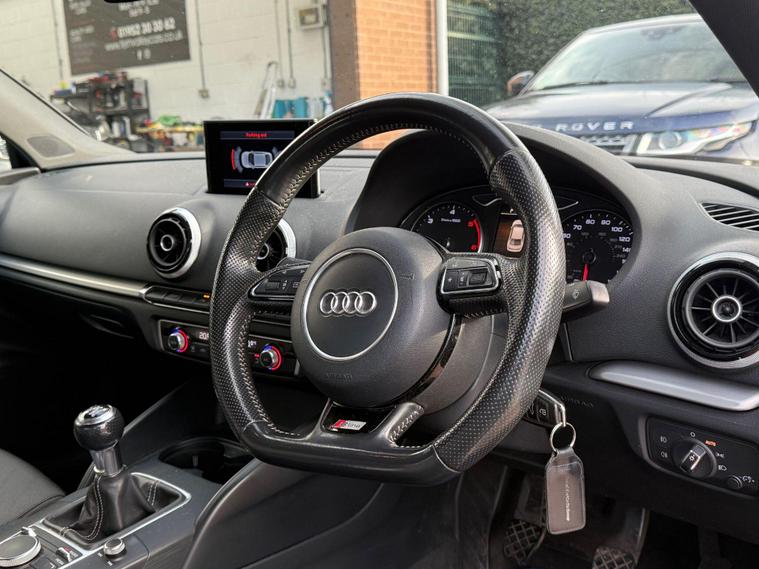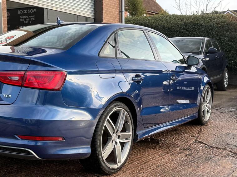 The number plate is included on this 2015 Audi A3 TDI S line, which has a good specification & a full service history, ensuring its excellent provenance. Just arrived in p/x, more images when all valeted. This stylish hatchback features a powerful yet efficient 2.0 litre diesel engine, meeting Euro 6 emissions standards. It comes equipped with desirable S line trim, enhanced by 19 inch 5 arm wing design alloy wheels in high gloss titanium and a striking black styling package. For added convenience, it includes the Audi Parking System Plus with front sensors and a Comfort Package with automatic headlights. Bluetooth audio streaming is also integrated for seamless connectivity. Cambelt kit changed at 64, 198 miles. We sell with a full annual service completed and a new 12 months MOT. 6 Months Warrantywise Gold Warranty. Finance a pleasure, please call for quote, no deposit also allowed. Satnav DAB radio media system with USB & Bluetooth. Sundym rear privacy glass. All handbooks. 2 x keys. We sell with a full annual service carried out & 6 Months Warrantywise Gold Warranty. 12 Months AA Breakdown Membership included. AA Driveaway 5 Day Insurance available - Only £44.99 NEED FINANCE? No Problem - SAF Registered. Simply click 'Apply for finance' on our website dealer's website We are a FCA registered dealership. Prime or subprime finance. Excellent finance rates starting from as low as 11.1% APR (Subject to status and terms and conditions) For any further information and details to view please contact David, who has over 50 years personal Motor trade experience! Delivery to your door is available, please ask for a quote. This Audi A3 offers significant advantages over similar vehicles. Its impressive fuel economy of 69 miles per gallon makes it an economical choice for daily driving. Furthermore, its low insurance group rating contributes to lower running costs. The vehicle also benefits from low CO2 emissions, aligning with environmental considerations. A 6 month warranty and a 12 month MOT provided on purchase offer peace of mind for the new owner..