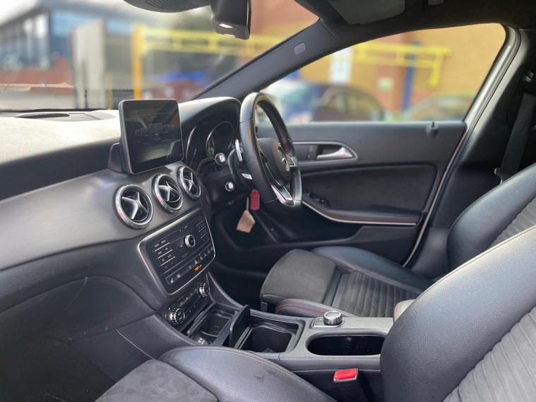 This Mercedes-Benz GLA220d AMG Line (Premium) from 2017 boasts an impressive provenance, having had only two owners. This stylish SUV features a powerful yet efficient 2.1L diesel engine paired with a four wheel drive system, ensuring confident handling in various conditions. As a Euro 6 compliant vehicle, it meets stringent emission standards. The AMG Line trim enhances its sporty appeal, while the Premium Package adds desirable features such as Xenon headlights, front and rear parking sensors, and heated seats for added comfort. You'll also appreciate the convenience of THERMOTRONIC luxury automatic climate control, automatic headlight activation, and the Audio 20 radio with Bluetooth connectivity.Experience a blend of performance and practicality with this GLA220d. Its acceleration from 0 to 62mph in just 7.7 seconds demonstrates its dynamic capability, while the impressive fuel economy of 57 mpg highlights its efficiency. The low CO2 emissions are also a significant advantage, contributing to lower running costs. Furthermore, its low insurance group rating makes it an economical choice for many drivers. The inclusion of a reversing camera with a 180 degree view simplifies parking, and the generous boot space ensures you have ample room for luggage or shopping, making this Mercedes-Benz GLA a well rounded and appealing option..