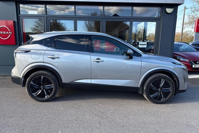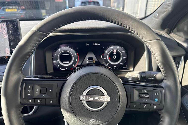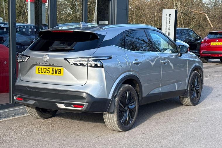 This 2025 Nissan Qashqai DIG-T Tekna is a Nissan manufacturer approved vehicle with only one owner from new. It features a 1.3L Petrol Hybrid engine, meeting Euro 6 emission standards, and comes equipped with a wireless charging pad, heated front seats, and a heated steering wheel for enhanced comfort. Parking is made easier with front and rear parking sensors, and the Blind Spot Warning system adds an extra layer of safety.The Qashqai DIG-T Tekna offers a generous boot space, making it practical for everyday use and longer journeys. The inclusion of features such as heated seats and steering wheel, alongside advanced parking aids and blind spot monitoring, clearly sets this vehicle apart from others in its class, providing a more comfortable and secure driving experience..