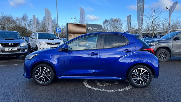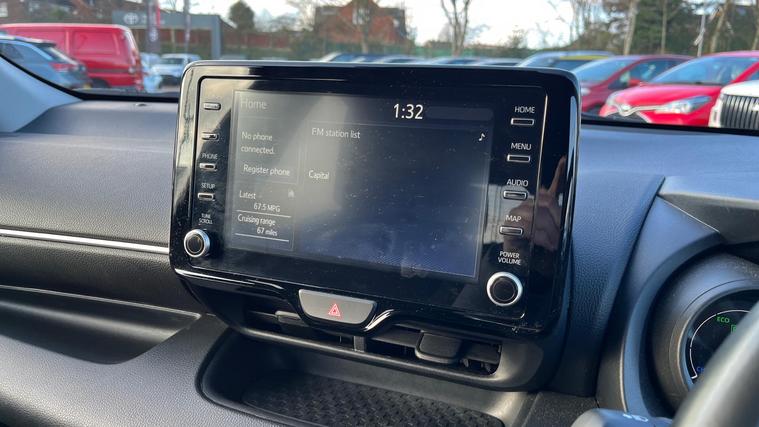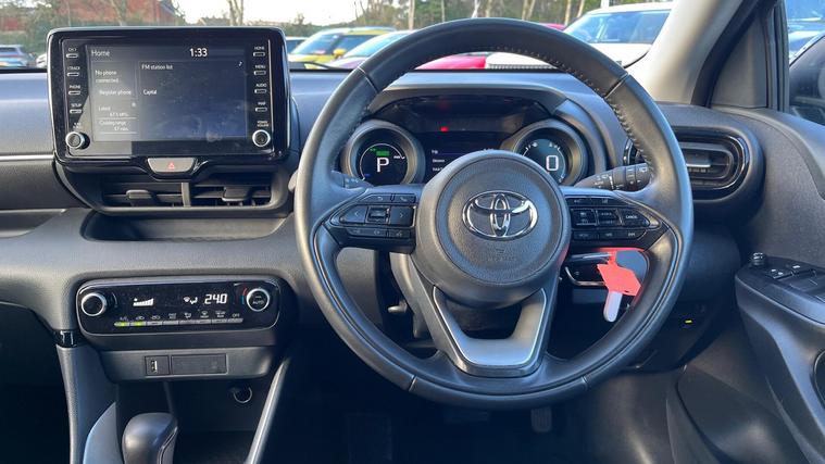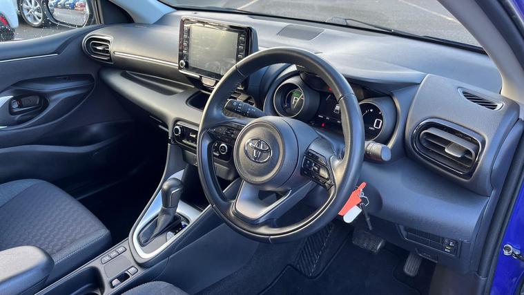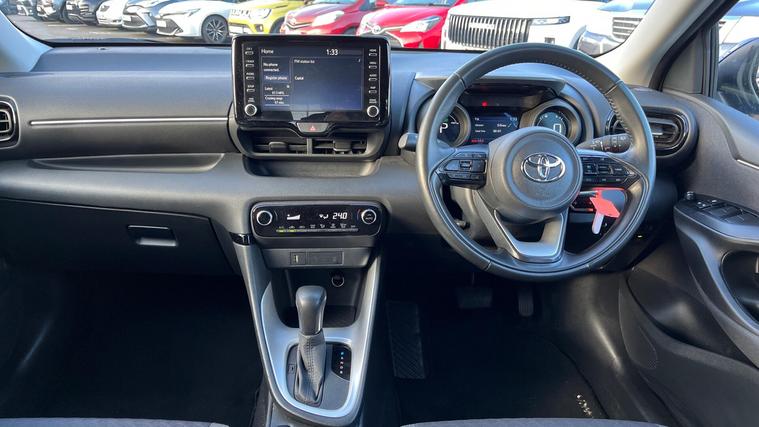 This 2023 Toyota Yaris VVT-h Design is a Toyota manufacturer approved vehicle with a full service history and only one owner from new, offering peace of mind with a 12 month warranty. This stylish hatchback is equipped with a responsive 1.5L petrol hybrid engine, meeting Euro 6 emission standards. Inside, you'll find automatic air conditioning with climate control, smartphone integration including Apple CarPlay and Android Auto, and Bluetooth connectivity for seamless communication and entertainment. The Design trim also benefits from automatic headlights and adaptive cruise control, making every journey more comfortable and convenient.With an impressive fuel economy of 69 mpg, this Yaris VVT-h Design offers excellent value and efficiency, highlighting its advantage over many other vehicles in its class. Its low CO2 emissions further contribute to its economical and environmentally conscious performance. This well maintained, single owner vehicle represents a superb choice for those seeking a reliable and feature packed compact car..