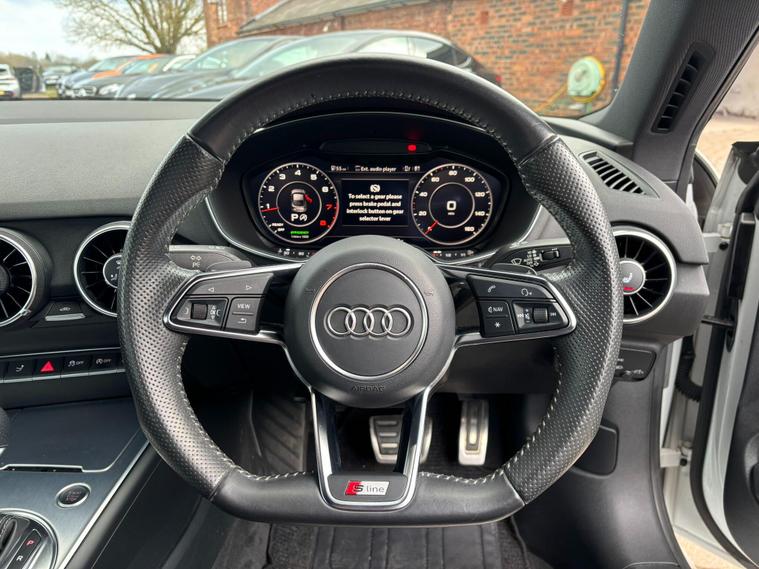 Hello & welcome to CMC Automotive. Here at CMC we are an approved AA trusted dealer. All vehicles come with nationwide warranty. We are delighted to offer this beautiful Audi TT 2.0TFSI S Line S Tronic Euro 6. Service history with vehicle including recent service & 12 months MOT. 2 Keys. Finished in Glazier white metallic with heated half leather interior, boasts an excellent specification; Virtual cockpit, tech pack, navigation, heated seats & much more, please see below for full specification & extras. ALL OUR VEHICLES COME HPI CLEAR. AA HISTORY CHECKED. WE OFFER COMPETITIVE FINANCE PACKAGES, APPY ONLINE. NATIONWIDE DELIVERY AVAILABLE. EXTENDED WARRANTIES AVAILABLE. FCA APPROVED DEALER ICO COMPLIENT DEALER. PART EXCHANGE WELCOME..