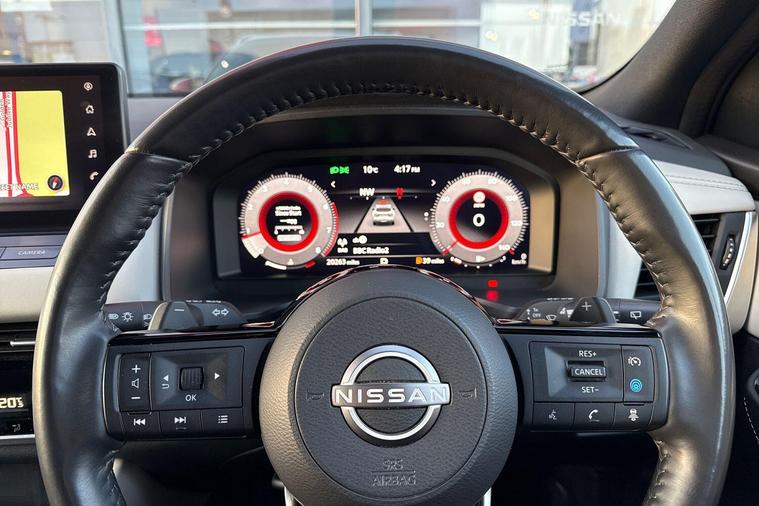 This 2023 Nissan Qashqai DIG-T Tekna presents an exceptional ownership proposition with its single owner and remarkably low mileage of just 20261 miles. As a Euro 6 compliant 1.3L Petrol Hybrid, this Tekna variant offers an efficient and modern driving experience. It comes with the reassurance of Nissan manufacturer approval and an MOT valid until December 2026. Notable features include front and rear parking sensors with parking assistance, a rear view camera, and an intelligent Around View Monitor providing a 360 degree camera view, all designed to make parking effortless. The intelligent Blind Spot Intervention system enhances safety by assisting with lane changes, while the LED headlights with adaptive driving beam ensure optimal visibility in various conditions.This Qashqai stands out from similar vehicles due to its impressive combination of features and condition. The low insurance group rating is a significant advantage, potentially saving owners money on running costs. Furthermore, the generous boot space ensures practicality for everyday needs and longer journeys. With only one owner and low mileage for its age, this vehicle represents a well maintained and desirable option in the SUV market..