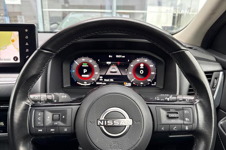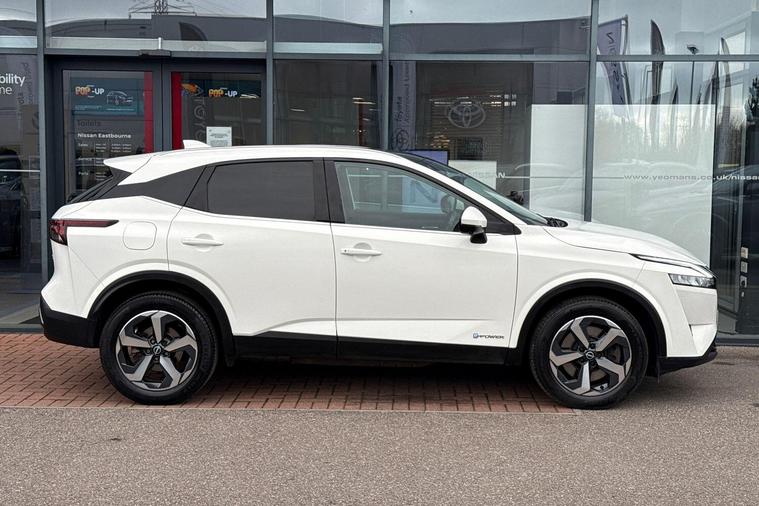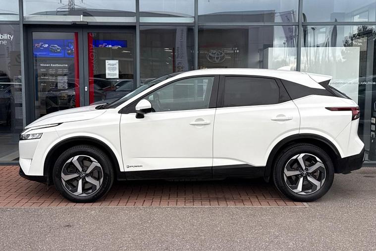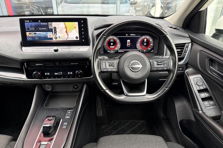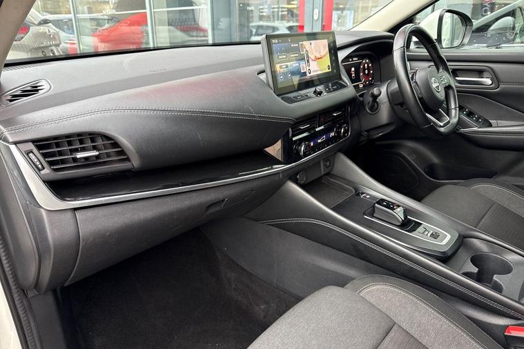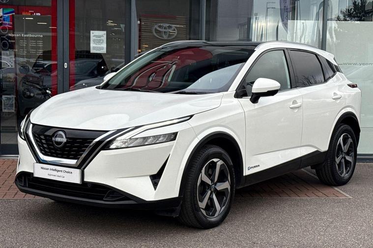 This 2022 Nissan Qashqai h e-POWER N-Connecta offers exceptional peace of mind with its MOT valid until January 2027 and a full dealership service history, having last been serviced on 2025-04-03 at 29, 621 miles. As a Nissan manufacturer approved vehicle with only one owner, this Euro 6 compliant model boasts a 1.5L Petrol Hybrid engine. It comes equipped with a desirable Glass Roof Pack featuring a fixed panoramic sunroof, Intelligent Blind Spot Intervention and Blind Spot Warning for enhanced safety, and Intelligent Around View Monitor with a 360 degree camera alongside a rear view camera for effortless parking.Experience impressive performance with an acceleration of 0-62mph in just 7.9 seconds, while enjoying excellent fuel economy of 54 mpg, indicating its efficiency compared to similar vehicles. This Qashqai also offers generous boot space for all your needs and benefits from low CO2 emissions, further setting it apart..