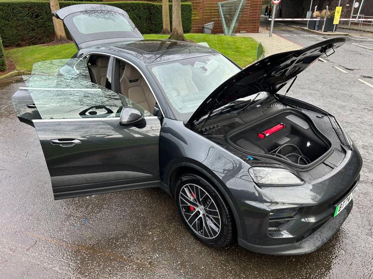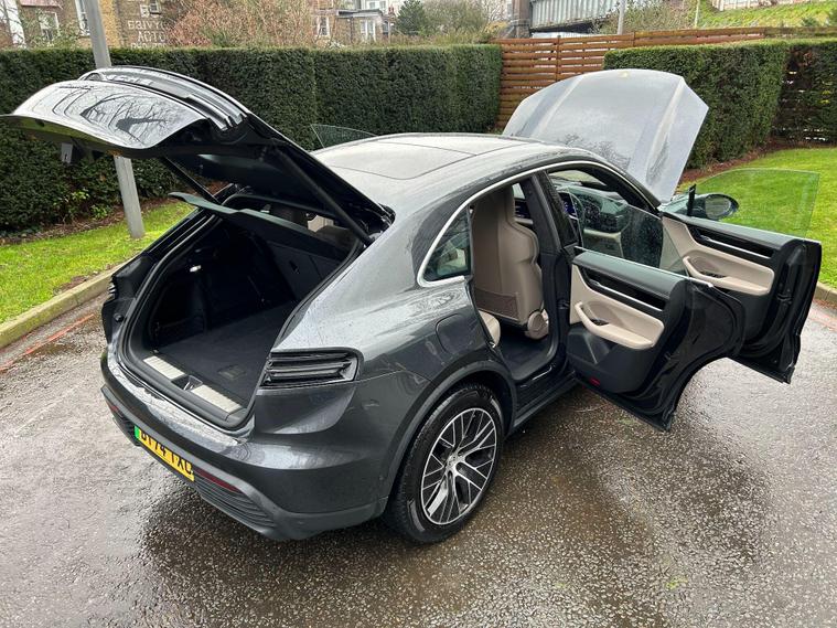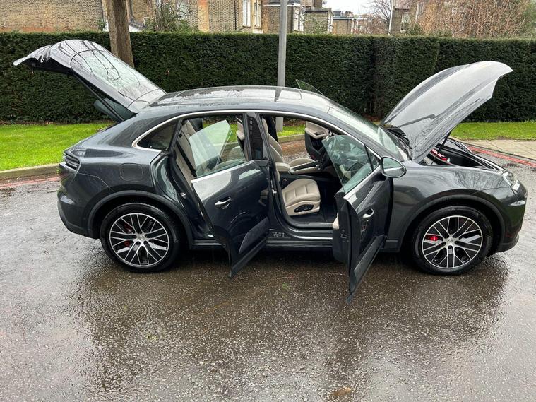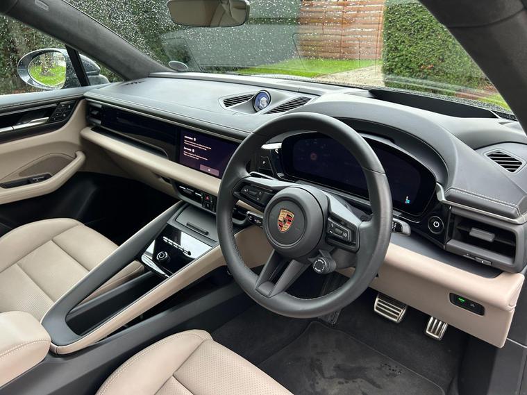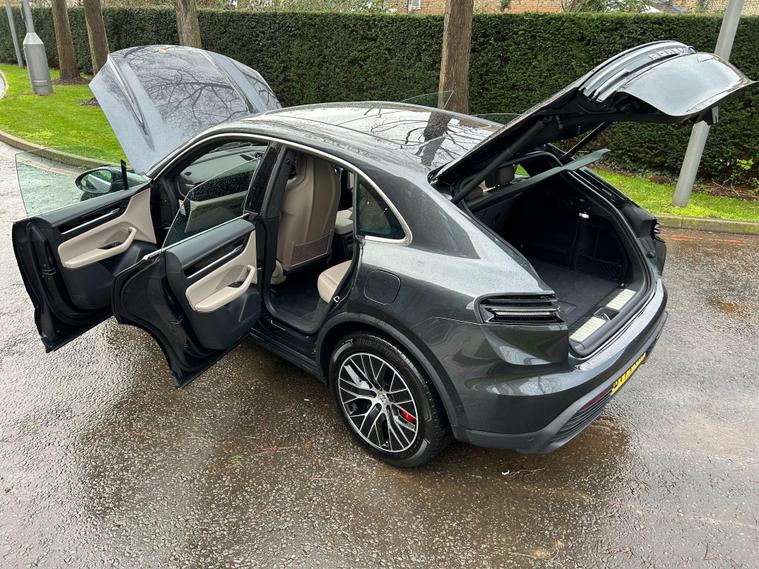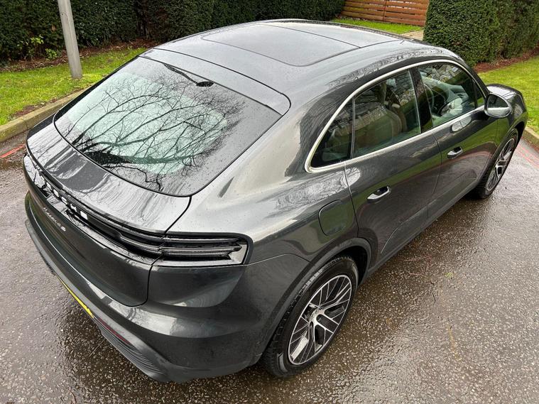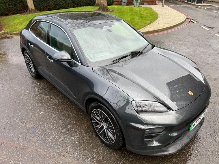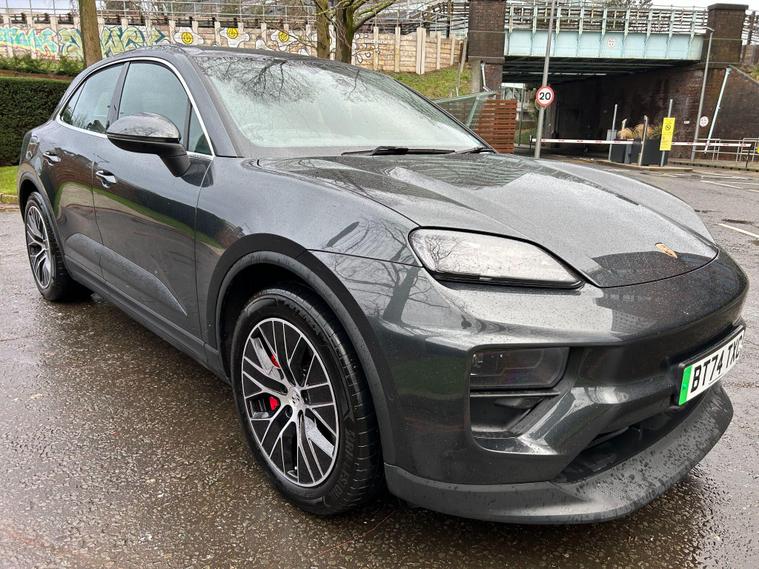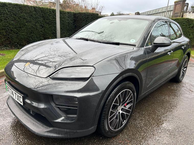 VAT QUALIFYING! PANORAMIC SUNROOF ADAPTIVE SPORTS SEATS & MEMORY PACK HEADS UP DISPLAY This 2024 Porsche Macan 4S is a remarkable example, having had only one owner since new. This all electric, four wheel drive SUV boasts a substantial 100 kWh battery, offering an impressive maximum range of 377 miles. Inside, you'll find a host of convenient features designed to enhance your driving experience, including Apple CarPlay with Siri Voice Recognition, Android Auto, and two zone automatic climate control. For your convenience, there's a smartphone compartment with wireless charging, and heated front seats ensure comfort on colder days. Parking is made easier with ParkAssist, which includes front and rear sensors and a reversing camera.The performance of this Macan 4S is truly exceptional, with a rapid acceleration of 0-62mph achieved in just 4.1 seconds, demonstrating its superior capability compared to other vehicles in its class. The generous boot space provides ample room for all your luggage and shopping needs. Furthermore, the ability to charge from empty to 80% in a mere 22 minutes at a public charging station highlights its advanced electric technology and practicality for everyday use and longer journeys..