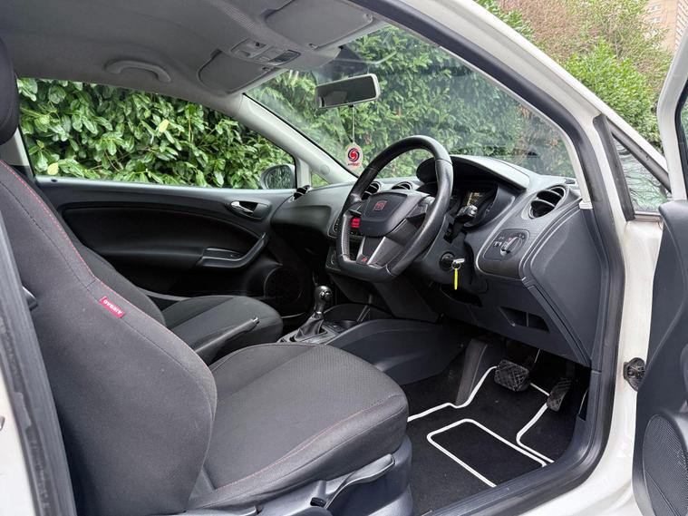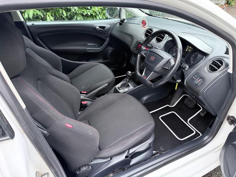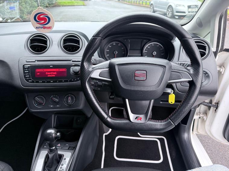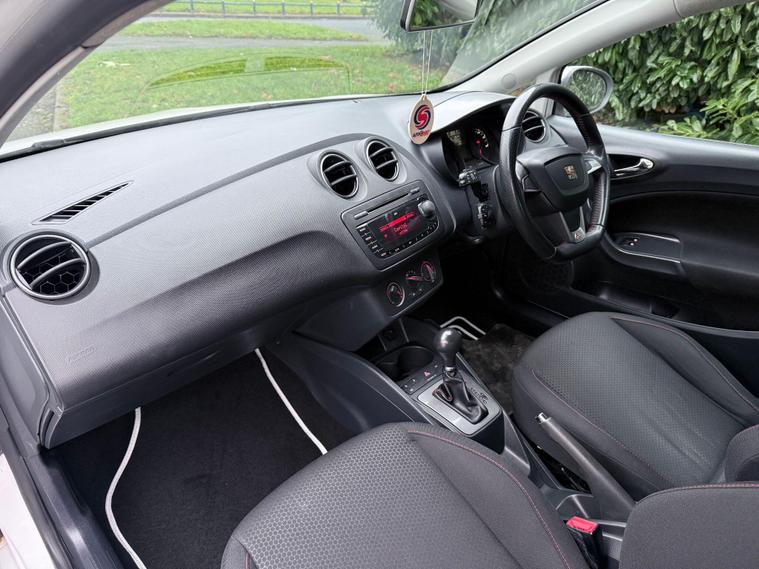 A stunning example of the Seat Ibiza finished in Candy white paint, this is the sporty FR model which looks fantastic and comes equipped with a variety of extras including 16'' FR alloy wheels, Rear LED lights, sports bucket seats with red stitiching, Flat bottom FR steering wheel with red stitching, cornering foglights, electric windows, electric mirrors, air conditioning, remote central locking, AUX connectivity, cruise control. Condition is excellent all round, 2 keys and full service history are present with the car, it is evident that it has been cherished for last owner since 2018, Powered by the 1.2Tsi petrol engine this Ibiza cheap to run and is in group 12 Insurance hence making this car cheap to run and insure yet still punchy and fun to drive. We have just carried out a full service on this Ibiza and installed a new timing chain kit and serviced the automatic gearbox, for added peace of mind this car will leave us with a full 12 months MOT..