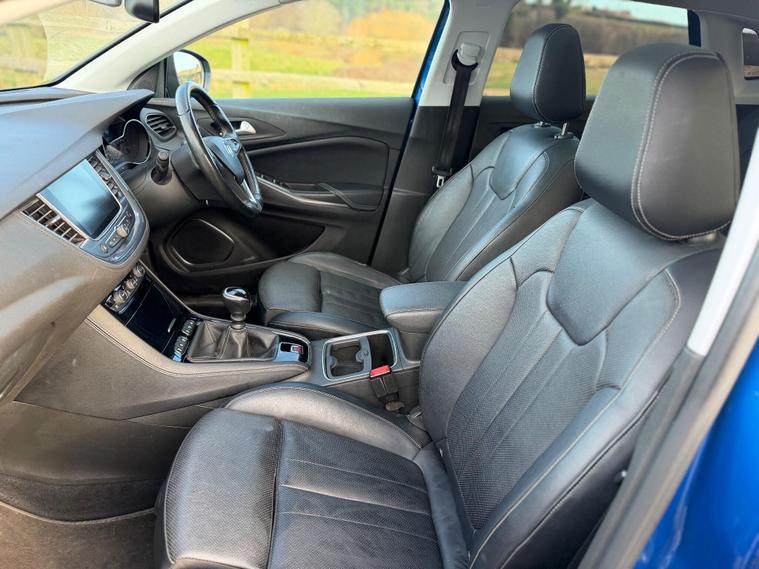 2019 19 reg Vauxhall Grandland X 1.2 T 130BHP Elite Euro 6 ULEZ compliant manual 5 door in metallic blue, 1 previous owner, full dealer service history, 1 previous owner, 2 keys, panoramic glass roof, heated and cool leather seats, alloy wheels, sat nav, privacy glass, cruise control, multifunctional steering wheel, air con, climate control. HPI CLEAR. PART EXCHANGE WELCOME, ALL VIEWINGS STRICTLY BY APPOINMENTS ONLY, SECURE YOUR CAR TODAY FOR JUST £200. EXTENDED WARRANTY PACKAGES AVILABLE, NATIONWIDE DELIVERY AVAILABLE..