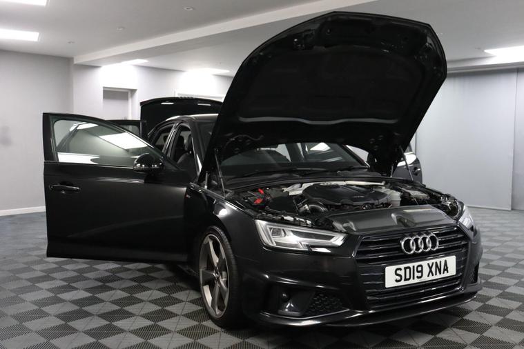 SD19XNA. Low mileage Audi A4 Black Edition with a Lower Insurance Group. A comfortable saloon that suits commuting, longer journeys and everyday use.Powered by the 2.0 TFSI petrol engine, this A4 offers smooth performance and a quiet drive on the motorway, while staying easy to drive around town.Inside, the car comes with Leather Seats, Heated Front Seats, Driver Information System with 7-inch Colour Display, MMI Navigation (SD Card) and Apple CarPlay. Audi Drive Select allows you to change the drive mode, and Deluxe 3-Zone Climate Control lets each passenger set their own temperature.Cruise Control with Speed Limiter, Front and Rear Parking Sensors and an Electromechanical Parking Brake support everyday driving. Bluetooth, DAB Digital Radio, Keyless Go, two USB charging ports and an AUX-IN are also included.Reserve now and book a test drive.This car has just been serviced and comes with a Good Service History (3 records), a new 12-month MOT with no advisories, a clear HPI report, 2 keys, and verified mileage for peace of mind. Finance is available, and we can provide a personalised video on request. Please note that some features (e.g., Navigation/CarPlay) may require an active subscription. Spec details can vary, so just ask if you’d like us to confirm anything. For more info or a finance quote, call ☎️ 01138032651..