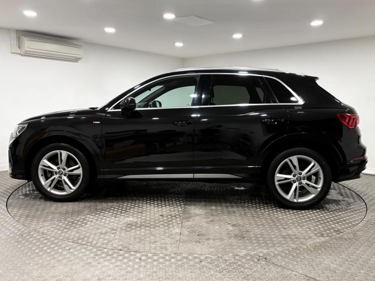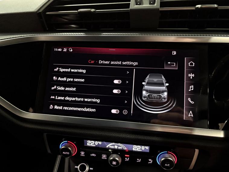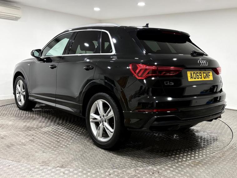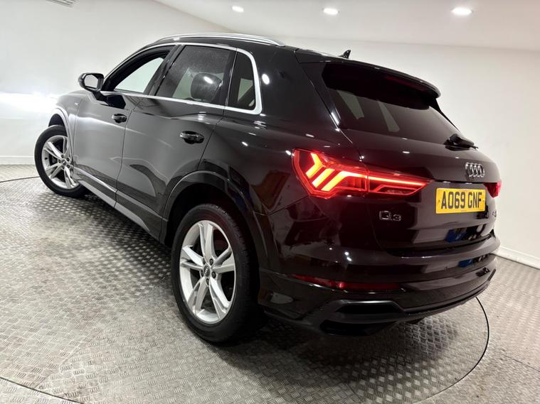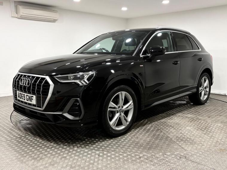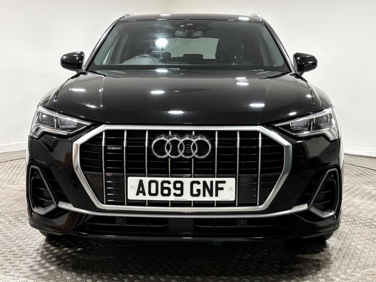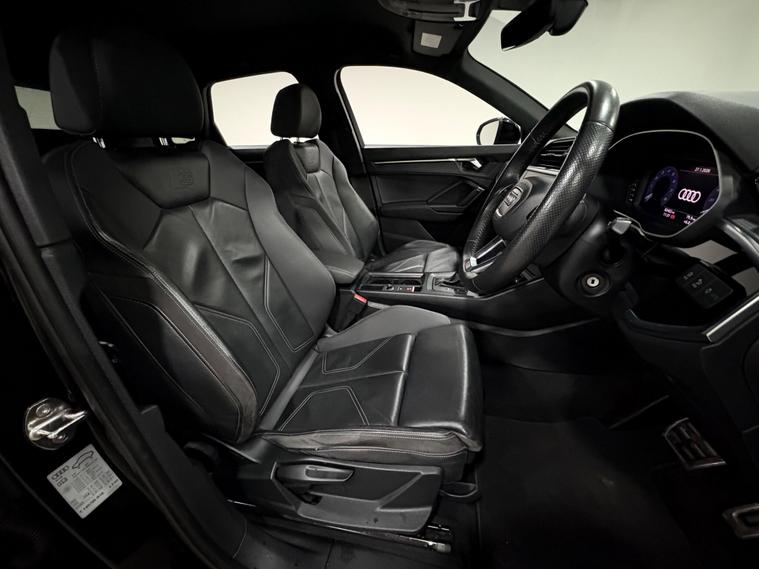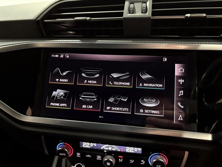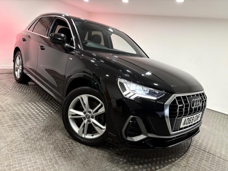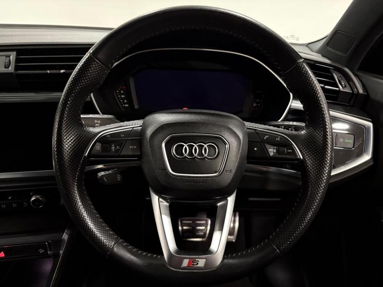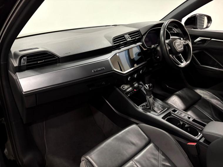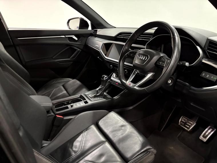 This Mythos black 2019 Audi Q3 TFSI S line offers a compelling blend of performance and practicality, full black leather interior trim and records of 6 Audi services, 2 keys supplied also. As a Euro 6 compliant model, it features a robust 2.0 litre petrol engine paired with Audi's renowned Quattro Four Wheel Drive system, ensuring confident handling in various conditions. The S line trim level enhances its sporty appeal, while the generous boot space provides ample room for your luggage or shopping and comes with an electrically operated boot. For added convenience and safety, this Q3 is equipped with rear parking sensors, Audi Side Assist for blind spot monitoring, and a Bluetooth interface for seamless connectivity. The intelligent light and rain sensor system automatically adjusts headlights, which are LED units featuring distinctive LED daytime running lights and dynamic rear indicators. PLEASE CALL 01522972873 FOR RUTHER DETAILS. PART EXCHANGE WELCOME..