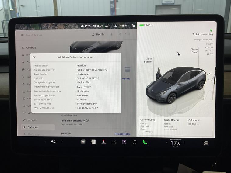 This 2022 Tesla Model Y Long Range boasts an MOT valid until November 2026, offering peace of mind for the coming years. As a fully electric vehicle, it features a substantial 85 kWh battery, providing an impressive maximum range of 331 miles when new. This Four Wheel Drive model is designed for efficiency and performance, with a full charge at home taking approximately 12 hours using a 7kW charger. For quicker top ups, it can achieve an 80% charge from empty in just 25 minutes at a public charging station. The Tesla Model Y Long Range stands out with its exceptional acceleration, reaching 0 to 60mph in a swift 4.8 seconds, demonstrating its dynamic capabilities. This performance, combined with a generous boot space, makes it a practical and exciting choice for everyday driving and longer journeys. The 331 mile range highlights its advantage over many other electric vehicles, allowing for fewer charging stops and more time on the road..