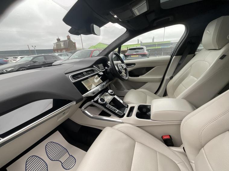 This 2022 Jaguar I PACE 400 HSE Black boasts exceptionally low mileage for its age, having covered just 21775 miles. As an electric vehicle, it offers a smooth and responsive driving experience, powered by a 90 kWh battery that provides a maximum range of 277 miles when new. This Four Wheel Drive model ensures excellent traction and stability in various conditions. The MOT is valid until September 2026, offering peace of mind for the new owner. The I PACE 400 HSE Black is designed for both performance and practicality. Its impressive acceleration allows it to go from 0 to 60mph in a swift 4.5 seconds, demonstrating its dynamic capabilities. Furthermore, it features a large boot space, making it a versatile choice for families or those who require ample storage. Charging is convenient, with a full charge at home taking approximately 12 hours and 36 minutes using a 7kW charger, while rapid public charging can achieve 80% capacity in just 50 minutes..