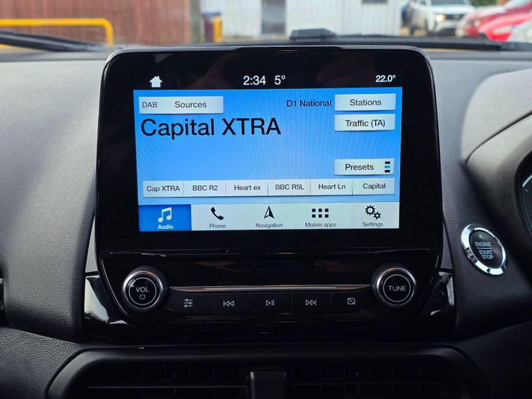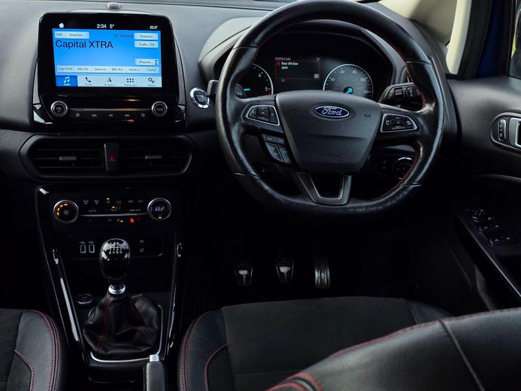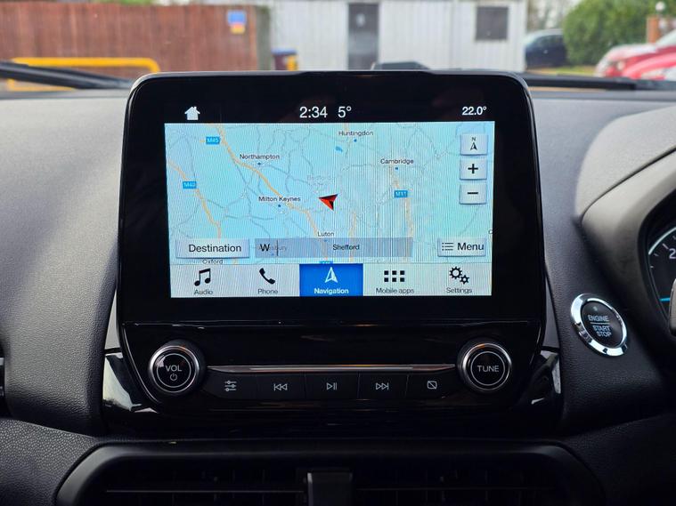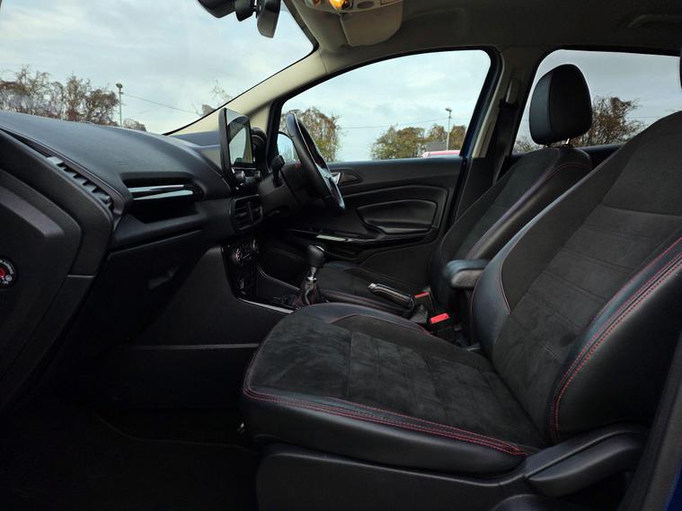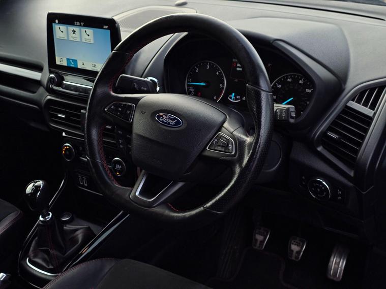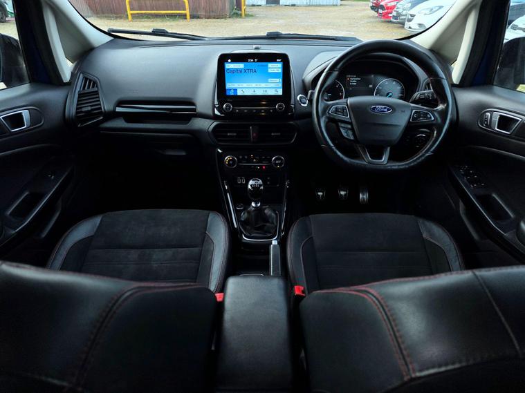 This 2018 Ford EcoSport TDCi ST-Line offers excellent peace of mind with its MOT valid until January 2027 and a full service history, all confirmed by a clear vehicle history check. This stylish ST-Line model is powered by an efficient 1.5L Diesel engine, meeting Euro 6 emissions standards. Inside, you'll find the Comfort Pack, which includes heated seats and a heated steering wheel for those colder journeys, alongside Electronic Automatic Temperature Control for perfect cabin climate.The EcoSport TDCi ST-Line also boasts a Ford DAB Navigation System with Ford SYNC3, offering seamless integration with Android Auto and Apple CarPlay, plus Bluetooth connectivity. For added convenience and safety, it features a rear view camera with rear parking sensors and rear privacy glass. This vehicle stands out with an impressive fuel economy of 69 mpg, a low insurance group, and low CO2 emissions, demonstrating its cost effective and environmentally conscious design compared to other vehicles in its class..