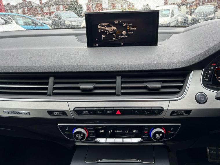 This Audi Q7 TDI V6 S line from 2016 boasts a clear vehicle history and has been owned by just one person, offering excellent provenance. This impressive seven seater SUV features a powerful 3.0 litre diesel engine and a four wheel drive system, ensuring capability in various conditions. It meets Euro 6 emissions standards and has a substantial towing weight of 2800 kg. Notable features include the Tour Pack and Dynamic Package, both incorporating adaptive cruise control, a head up display for convenience, and adaptive air suspension for a smooth ride. The S line trim is further enhanced by a sporty, flat bottomed, leather multi function steering wheel with shift paddles.1 OWNER, FULL SERVICE HISTORYAPPLE CAR PLAY / ANDROID AUTO / AUDI SMARTPHONE LINKADAPTIVE CRUISE CONTROL WITH STOP AND GOLANE GUIDANCE, HEADS UP DISPLAY, VIRTUAL COCKPITThis Audi Q7 offers a compelling blend of performance and practicality. Its acceleration from 0 to 60 mph in just 7.0 seconds highlights its dynamic capability, a strong indicator of its superior performance compared to other vehicles in its class. Furthermore, its low insurance group rating suggests that running costs are also more favourable. With its combination of a single owner history, comprehensive features, and strong performance figures, this Q7 represents a well maintained and capable choice for those seeking a premium seven seater SUV..