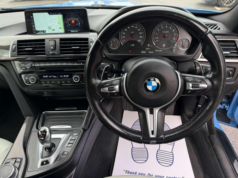 BMW M4 Competition (F82) finished in the unmistakable Yas Marina Blue over Extended Merino Leather in Silverstone — a colour combination that defines this generation of M4 and one that enthusiasts actively search for.This car has had just 2 owners from new and comes with a full service history. It has been freshly serviced, freshly MOT’d, and fitted with brand new front brake discs and pads, so it is fully prepped and ready to drive away with no immediate expenditure required.Inside, the cabin is elevated with Carbon Fibre Interior Trim with Black Chrome Highlights, perfectly complementing the Silverstone leather. It is well optioned with Head-Up Display, Reversing Assist Camera, Enhanced Bluetooth with Wireless Charging, WiFi Hotspot Preparation, Speed Limit Display, Sun Protection Glazing, and a Sliding Front Armrest for added comfort.The M4 Competition is celebrated for its sharp chassis, aggressive presence and immense twin-turbo performance, offering a genuine M-car experience while remaining perfectly usable day to day. The spec, colourway and condition of this example make it a standout car in today’s market.A properly maintained, correctly specified M4 Competition that looks, drives and presents exactly as it should..