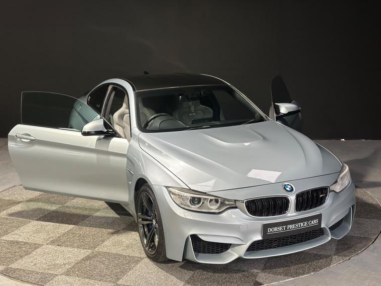 Dorset Prestige Cars are proud to present to you this BMW M4 3.0 BiTurbo DCT Finished in Silverstone Metallic with full Ivory leather seats.Exterior = Full M Sport body styling, Carbon Fibre roof, Carbon Fibre rear spoiler and side mirrors, Front and rear parking sensors, Reversing camera.Interior = Full Silver M sport leather interior, Electric and heated memory seats, Multi function M Sport steering wheel with cruise control, Centre media screen with i Drive, SAT NAV, DAB Radio, Bluetooth connection, electric windows and mirrors, climate control with air-conditioning and much much more.....Service History = BMW Main Dealer 21/ 02/ 2017 @ 2402 miles, BMW Main Dealer 02/ 11/ 2017 @ 5265 miles, BMW Main Dealer 21/ 09/ 2018 @ 8780 miles, BMW Main dealer 30/ 069/ 2020 @ 23852 miles, BMW Specialist 10/ 02/ 20025 @ 61411 miles.This car comes complete with original book pack and manualsNationwide Delivery Trailered or Driven you Choose, 6 Months Warranty+ Extended warranties available 12 Months AA Breakdown....This vehicle comes with 6 months Warranty for full peace of mind (up to 36 month extension available), 3 or 5 year ceramic coating available, train station collection service, nationwide delivery available on all vehicles. Part Exchange welcome. Open Monday to Saturday ***Viewing By Appointment Only*** All Major Credit and Debit Cards Accepted. Please visit our website for more information on our services and to view our other vehicles currently in stock. Secure this vehicle today for £500 deposit T&C’s Apply! All our vehicles are HPI clear and have been through our workshop for a full health check for peace of mind. See our 5***** reviews , Buy with confidence through us. Find us on Facebook Instagram and YouTube! View our full range of cars on our website and Autotrader profile..