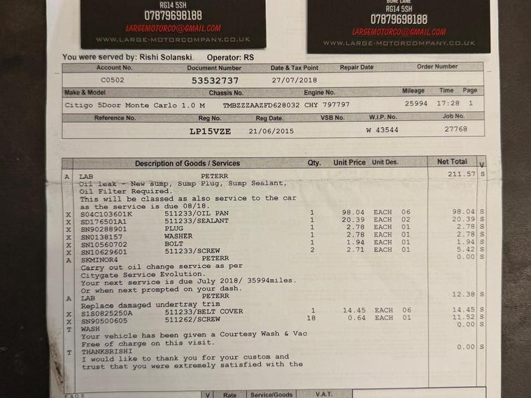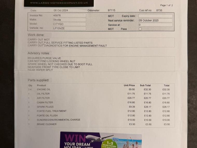 This 2015 Skoda Citigo MPI Monte Carlo is presented with a full service history, most recently serviced at 103, 145 miles, offering excellent provenance. This stylish Monte Carlo variant is equipped with a 1.0 litre petrol engine and benefits from a 3 month warranty for your peace of mind. It also comes with 12 months MOT provided on purchase, ensuring road worthiness. Notable features include the Convenience Pack, which incorporates rear parking assistance, and telephone preparation with Bluetooth connectivity, alongside manual air conditioning to keep you comfortable on every journey.You will find this Skoda Citigo to be an economical choice, boasting an impressive fuel economy of 63 miles per gallon, which is better than many similar vehicles. Its low CO2 emissions further contribute to its efficiency, and it sits within a low insurance group, making it an affordable option for many drivers. These highlights demonstrate how this Citigo offers a cost effective and practical motoring solution..
