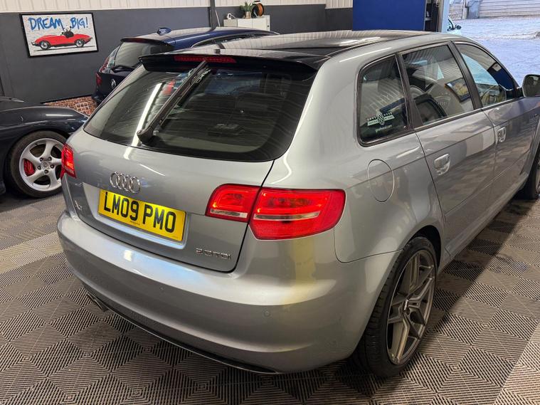 2009 Audi A3 2.0 TDI S line Sportback Euro 4 5dr with 145, 000 miles, finished in Moss Silver metallic. This well-specified S line example comes with a great blend of factory options and tasteful upgrades, including Bola B111 alloy wheels (with invoice), a K&N air filter and an upgraded Android head unit. It also benefits from the rare Open Sky panoramic roof, front and rear parking sensors, rear side airbags, cruise control, through-load system, storage pack and interior light pack.The car has an incredible service history showing consistent maintenance over the years, reflecting how well it has been cared for. It has had two cambelt changes, with the most recent carried out mid last year along with a service.An MOT will be completed up to MOT standard only as part of our preparation. Due to the age and mileage, this vehicle falls outside of our usual retail standards and is priced accordingly. No warranty is given or implied. We do ensure these vehicles are MOT’d to a good standard, but please study all images carefully to assess the full condition..