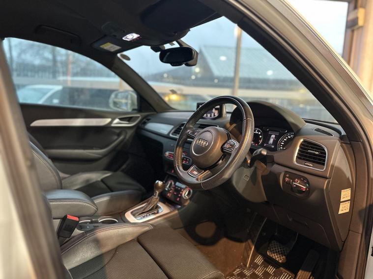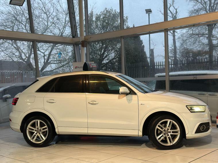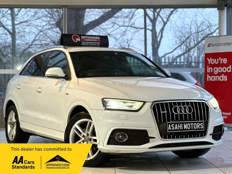 ((ID - AGL600). Introducing this great AUDI Q3 SLINE QUATTRO - 2013 .An excellent white SUV with ample boot space and a versatile interior, perfect for family trips and outdoor adventures with a black colour part leather interior scheme. ?Fully ULEZ compliant. Features included: ✓ Can be upgraded to the latest Apple CarPlay for phone connectivity with a huge range of applications (Spotify/Calls/Waze).✓ SLine✓ Quattro✓ Rear Sensors✓ Auto Dimming Mirror (Electrochromatic)✓ Voice Control✓ Start Stop System ✓ Reverse Camera✓ Paddle Shifter ✓ Automatic Headlight system ✓ *Any externally fitted dash-cams seen in any car pictures are not guaranteed to be provided upon sale.Warranty & Delivery:?️ This car comes with a 6 months Autoguard Premium Warranty ? Mainland Nationwide delivery available at an extra charge.Special Offer:Purchase this vehicle through our AA page and receive 12 months’ free basic AA breakdown cover ?Service History:? Well-maintained dealer and independent service history? Fresh service carried out upon sale? Battery health check included?️ Road test and pre-delivery inspection upon saleSourced from Parent Company in Japan:✓ Carefully selected high-grade vehicles ??✓ Same parts and insurance compatibility as UK models ??Reserve Today:? Secure this car with a holding deposit today! ?Important Information: Road Tax/Features/Specification Information: Please contact our sales team directly for the latest road tax costs and exact vehicle features/specification/model, as this can vary from online listings. ?.