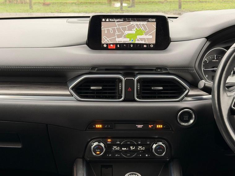Full Service History, Heads Up Display, Heated Seats, Heated Steering Wheel, Electric Seats With Memory, LED Headlights, Speed Limit Display, Full Black Leather Interior, Satellite Navigation, Bluetooth Audio, Cruise Control, Power Boot, Fully Loaded. This 2018 Mazda CX-5 SKYACTIV-D Sport Nav offers an exceptional blend of style and practicality, boasting a Euro 6 compliant 2.2 litre diesel engine. This Sport Nav trim level comes equipped with Blind Spot Assistance and LED headlights, ensuring peace of mind on every journey. Inside, you'll find luxurious leather upholstery, complemented by a heated steering wheel for added comfort during colder months. The advanced Active Driving Display projects vital information such as vehicle speed, warnings, and turn-by-turn navigation directly onto the windscreen (HUD), complete with Traffic Sign Recognition. Dusk sensing automatic headlights further enhance convenience and safety.This CX-5 stands out with its impressive fuel economy, achieving up to 57 miles per gallon, which is a significant advantage over many other vehicles in its class. Its low CO2 emissions also contribute to a more environmentally conscious drive. Furthermore, the generous boot space makes it ideal for families or those who need ample room for luggage or shopping. The vehicle also benefits from a low insurance group, making it an economical choice for ownership..