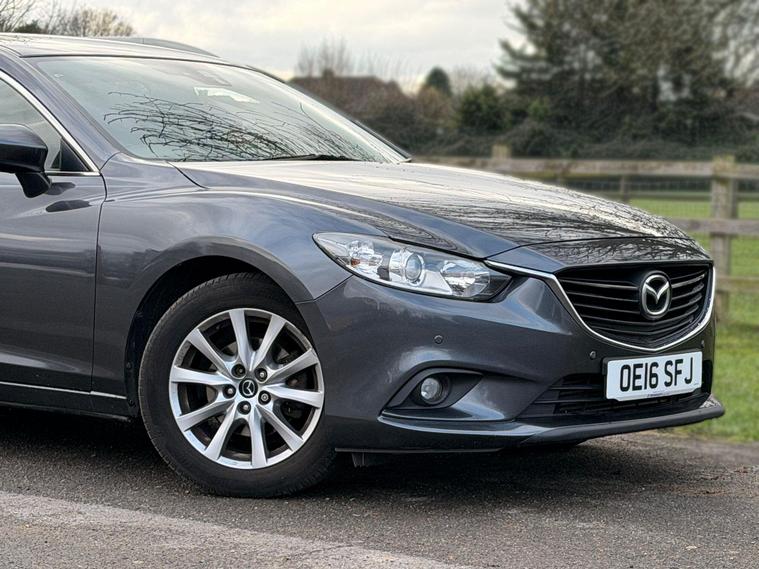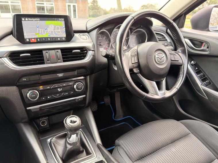 This 2016 Mazda6 SKYACTIV-D SE-L Nav presents a superb ownership proposition, having been cared for by only two owners. This well appointed Mazda6 features a responsive 2.2 litre diesel engine and meets Euro 6 emissions standards. Inside, you will find a dual zone climate control system for personalised comfort, an integrated Bluetooth system for seamless connectivity, and dusk sensing automatic headlights for enhanced visibility. For added convenience and safety, this model is equipped with both front and rear parking sensors.This particular Mazda6 stands out with its impressive fuel economy, achieving an outstanding 67 miles per gallon, which is significantly better than many other vehicles in its class. Furthermore, its low CO2 emissions contribute to a more environmentally conscious drive. The low insurance group rating also means that running costs are kept to a minimum, making this Mazda6 an economical and practical choice for everyday use..