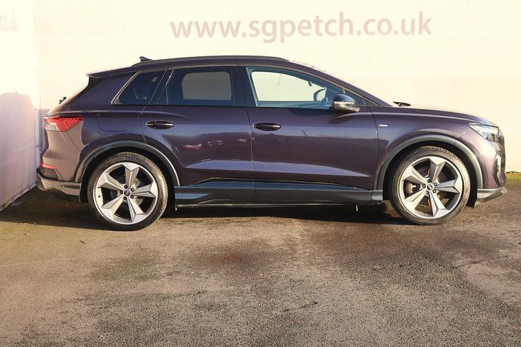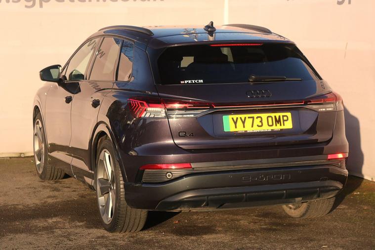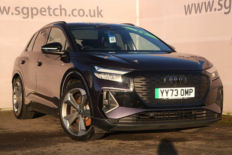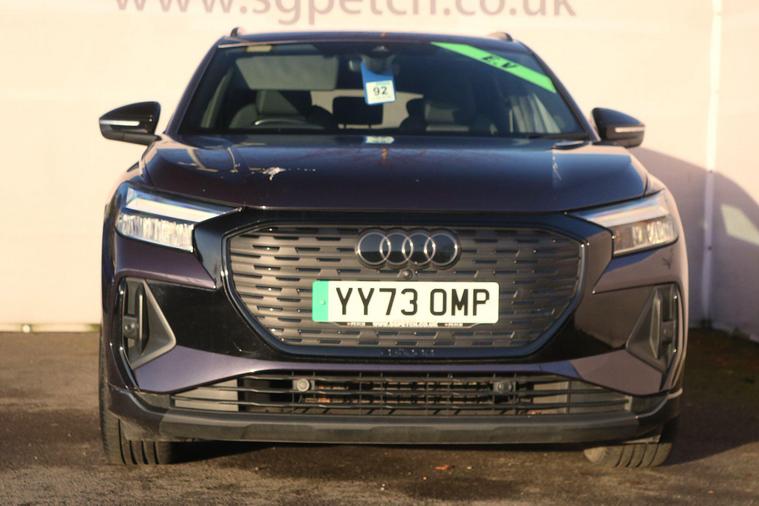 Discover the 2023 Audi Q4 e-tron Black Edition, an electric vehicle offering an impressive maximum range of 316 miles on a full charge. This striking Black Edition variant combines sophisticated styling with advanced electric performance. Inside, you'll find comfort features like heated front seats and auxiliary air conditioning, ensuring a pleasant journey in any weather. Connectivity is seamless with the integrated Bluetooth interface, while the Parking System Plus, including front and rear sensors and a rear-view camera, makes manoeuvring effortless.The Audi Q4 e-tron Black Edition stands out with its substantial 82 kWh battery, providing a generous 316 miles of range, which is a significant advantage for longer trips. Charging is convenient, with a full charge at home taking approximately 11 hours and 30 minutes using a 7kW charger, and rapid public charging can replenish the battery from empty to 80% in just 30 minutes. Furthermore, this model boasts a large boot space, offering ample room for luggage, shopping, or equipment, making it a practical choice for everyday life and adventures..