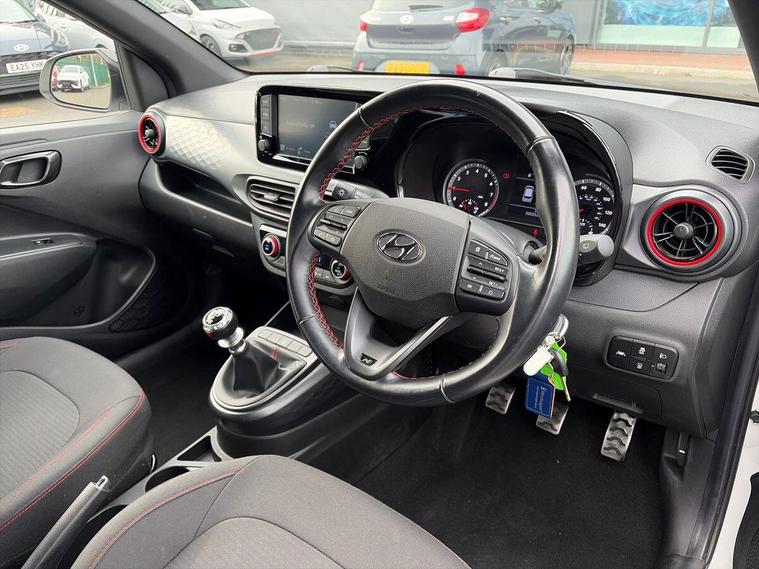 Hello and thank you for taking the time to view our Used Car Listing – this is a 2022 (72) Hyundai i10 1.0 T-GDi N Line Hatchback, finished in crisp Atlas White, with just 20, 010 miles on the clock. A fantastic opportunity to own Hyundai’s sporty city car, blending compact practicality with N Line styling and an engaging drive.Powered by the punchy one litre T-GDi petrol engine producing 100 PS, paired with a 6-speed manual gearbox, the i10 N Line delivers lively performance while remaining economical and easy to live with. Fully Euro 6 compliant, it’s perfectly suited to both urban driving and longer journeys.As the N Line specification, this i10 comes with a great level of equipment and sporty touches, including:N Line exterior styling, with unique bumpers, grille and alloy wheelsTouchscreen infotainment system with Apple CarPlay™ and Android Auto™Rear parking sensors & rear-view camera for easy manoeuvringSports seats with N Line interior detailingCruise control & speed limiterLane Keep Assist & Forward Collision AvoidanceAir conditioningLeather-wrapped steering wheel and gear leverCompact, stylish and fun to drive, the i10 N Line is ideal for those who want a small car with big character, low running costs and modern technology.This vehicle has been supplied by a Hyundai main dealer and will be prepared to our highest standards. It also benefits from the remainder of Hyundai’s 5 Year Unlimited Mileage Warranty, giving you added peace of mind.Call us today to arrange your test drive, request your bespoke video walkaround, or reserve this car.Thank you again for viewing our listing –Hutchings – You Drive, Our Passion..