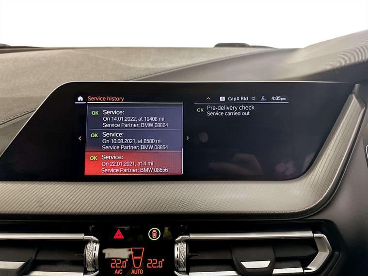 This 2021 BMW 1 Series 118i M Sport benefits from a partial service history, offering a well maintained example of this popular hatchback. Finished in the sporty M Sport trim, this model features a responsive 1.5 litre petrol engine and meets Euro 6 emissions standards. Inside, you'll find the comfort of Perforated Dakota Leather in Black with a distinctive Blue Highlight, complemented by the advanced BMW Live Cockpit Plus which includes Bluetooth connectivity. For convenience and safety, it is equipped with PDC Park Distance Control for both the front and rear, along with a Rain Sensor that automatically activates the headlights.The driving experience is further enhanced by the inclusion of a Bluetooth Hands Free system with a USB Audio Interface, ensuring seamless connectivity on the go. This BMW 1 Series 118i M Sport also boasts a generous boot space, making it practical for everyday use and longer journeys. Its performance is notable, achieving 0 to 62 miles per hour in just 8.5 seconds, demonstrating a spirited acceleration that sets it apart.For peace of mind this vehicle comes with service history and has completed a multi point AA dealer's website finance is also available.We are open 7 days a week and have more than 1500 cars to choose from.All our Euro 4 Petrol and Euro 6 Diesel vehicles meet the ULEZ standard.Vehicle specification can be found below. From time to time vehicles have manufacturer recalls notified. Please read our recall policy on our website for further information..