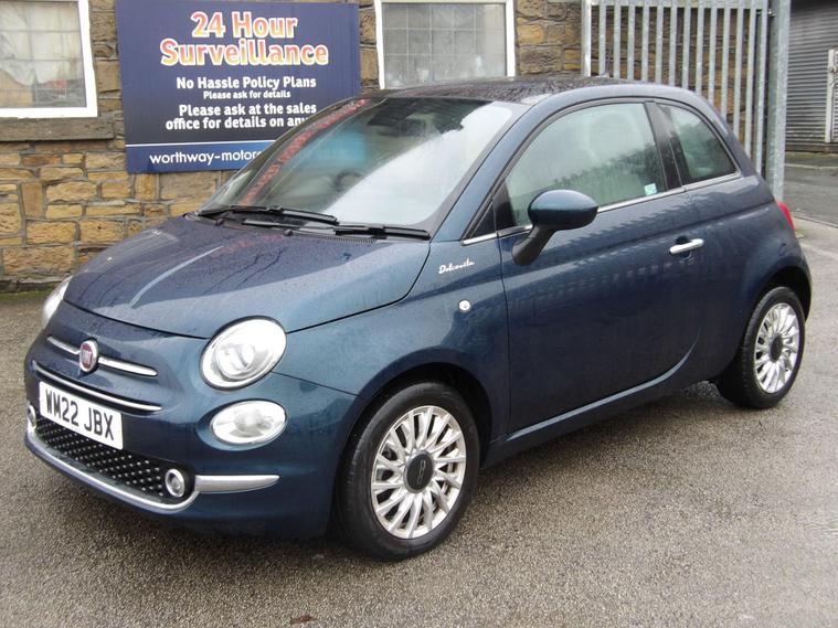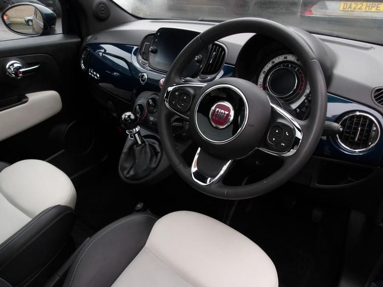 This 2022 Fiat 500 Dolcevita offers exceptional value with only one owner and a full service history. This stylish city car is powered by an efficient 1.0L Petrol Engine, meeting Euro 6 emission standards. It boasts low mileage for its age, having covered just 18, 000 miles, and comes with a 6 month warranty for your peace of mind. The MOT is valid until January 2027, further assuring its road worthiness.Experience convenience and connectivity with features like rain and dusk sensors for automatic headlights, a fixed panoramic sunroof, and seamless Apple CarPlay and Android Auto integration. Stay comfortable with air conditioning and enjoy your favourite music through the 7in HD touchscreen radio with Bluetooth, USB, and DAB capabilities. This Fiat 500 stands out with its impressive fuel economy of 61 mpg, low CO2 emissions, and a low insurance group, making it a more economical choice compared to similar vehicles..