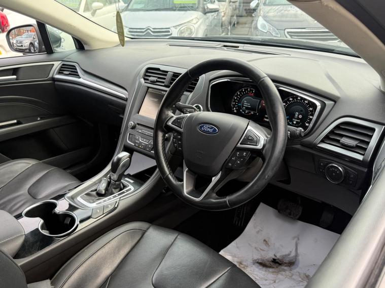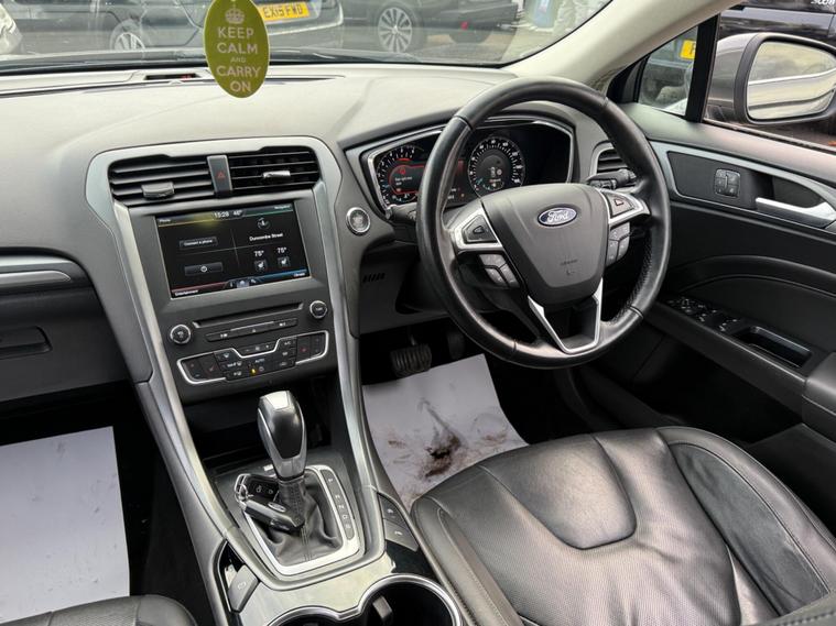 CAT S REPAIRED - OSR QUARTER REPAIRED This 2015 Ford Mondeo TDCi Titanium offers a blend of comfort and advanced technology, making it a compelling choice. Powered by a robust 2.0L Diesel engine and meeting Euro 6 emissions standards, this model is equipped with a desirable Winter Pack, featuring heated seats and a heated steering wheel for those colder journeys. It also includes Blind Spot Monitoring with Blind Spot Assistance, Dynamic LED Adaptive Headlights, and Adaptive Cruise Control, enhancing both safety and convenience. The rear privacy glass adds a touch of style and seclusion.Experience impressive performance with this Mondeo, capable of accelerating from 0 to 62mph in just 8.6 seconds, demonstrating its responsive nature. The generous boot space ensures practicality for all your needs, whether for daily errands or longer trips. These features, combined with its efficient diesel engine and sophisticated Titanium trim, position this Ford Mondeo as a well rounded and capable vehicle..