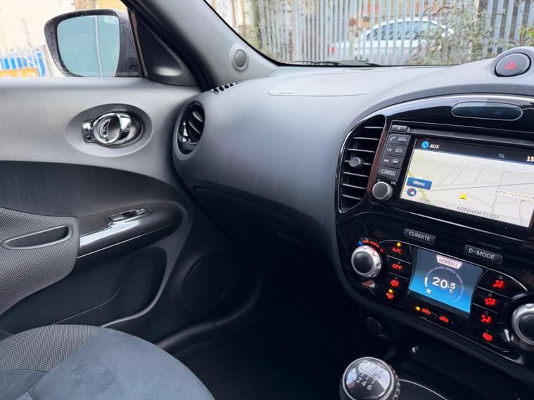 This is a classic example of Nissan Juke 1.2 DIG-T Acenta Premium Manual 6Spd Euro 5 (s/s) 5dr, Low mileage, Excellent condition in and out, 2 Keys, 1 Owner from new, Full Nissan Dealer Service History with 10 Stamps, Climate Control, Navigation, Privacy Glass, 17'' Alloy Wheels, Reversing camera, Parking Sensors and many more features. Well looked after car, sounds and drives like new, ULEZ compliant. A car not to be missed. Full warranty which can be extended up to two years depending on the age of the car. HPI clear. ** Call now to book a test drive**We are an AA approved dealer and provide 12 months free break down cover on all our cars. Our cars come with full warranty which can be extended up to two years depending on the age of the car. All our cars are fully sanitised & valeted. Part Exchange Welcome. Finance option available, Reserve any car for as little as £99 which is fully refundable. (Strictly by appointment)..
