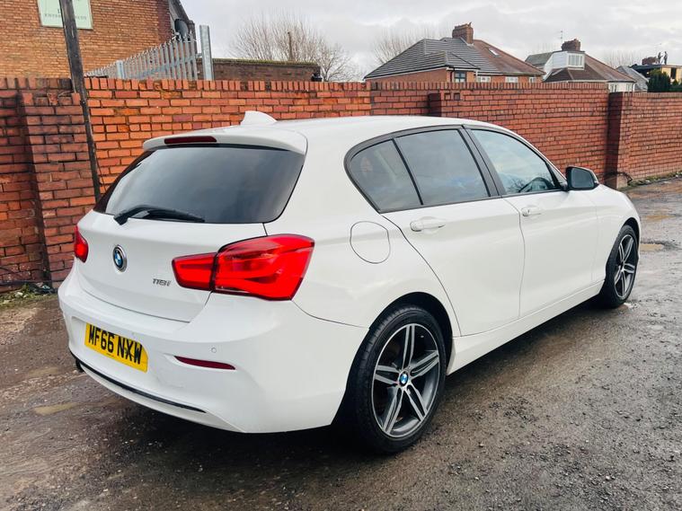 2 OWNER FROM NEW FULL 12 MONTH MOT EURO 6 CAR JUST ARRIVED PART EXCHANGE AND DELIVER AVAILABLE This 2016 BMW 1 Series 118i Sport is a standout example, boasting an impressively low mileage of just 62, 921 miles and having been cared for by only two owners. This Euro 6 compliant model features a responsive 1.5 litre petrol engine, delivering an engaging 0-62mph acceleration in a swift 8.5 seconds. Inside, you'll appreciate the Sport trim's Brushed Aluminium interior trim with a Black High-Gloss finisher, complemented by automatic headlights and single zone automatic air conditioning for your comfort. The Driver Comfort Package adds convenience, including rear parking sensors, and Bluetooth hands free facility ensures you can stay connected safely on the go.The generous boot space offers practicality for everyday needs and longer journeys, making this 1 Series a versatile choice. When comparing this vehicle to others, its combination of low ownership, minimal mileage for its age, and the desirable Sport trim with its specific features, such as the automatic climate control and Bluetooth connectivity, clearly sets it apart. This BMW 1 Series 118i Sport offers a compelling blend of performance, comfort, and practicality..